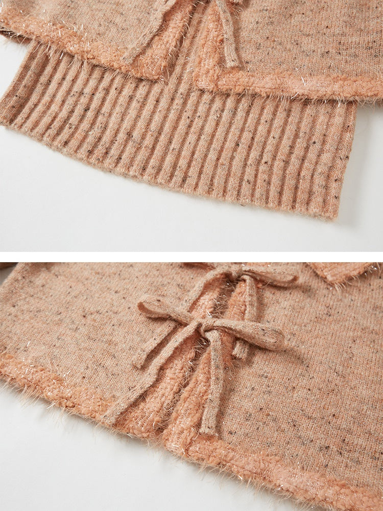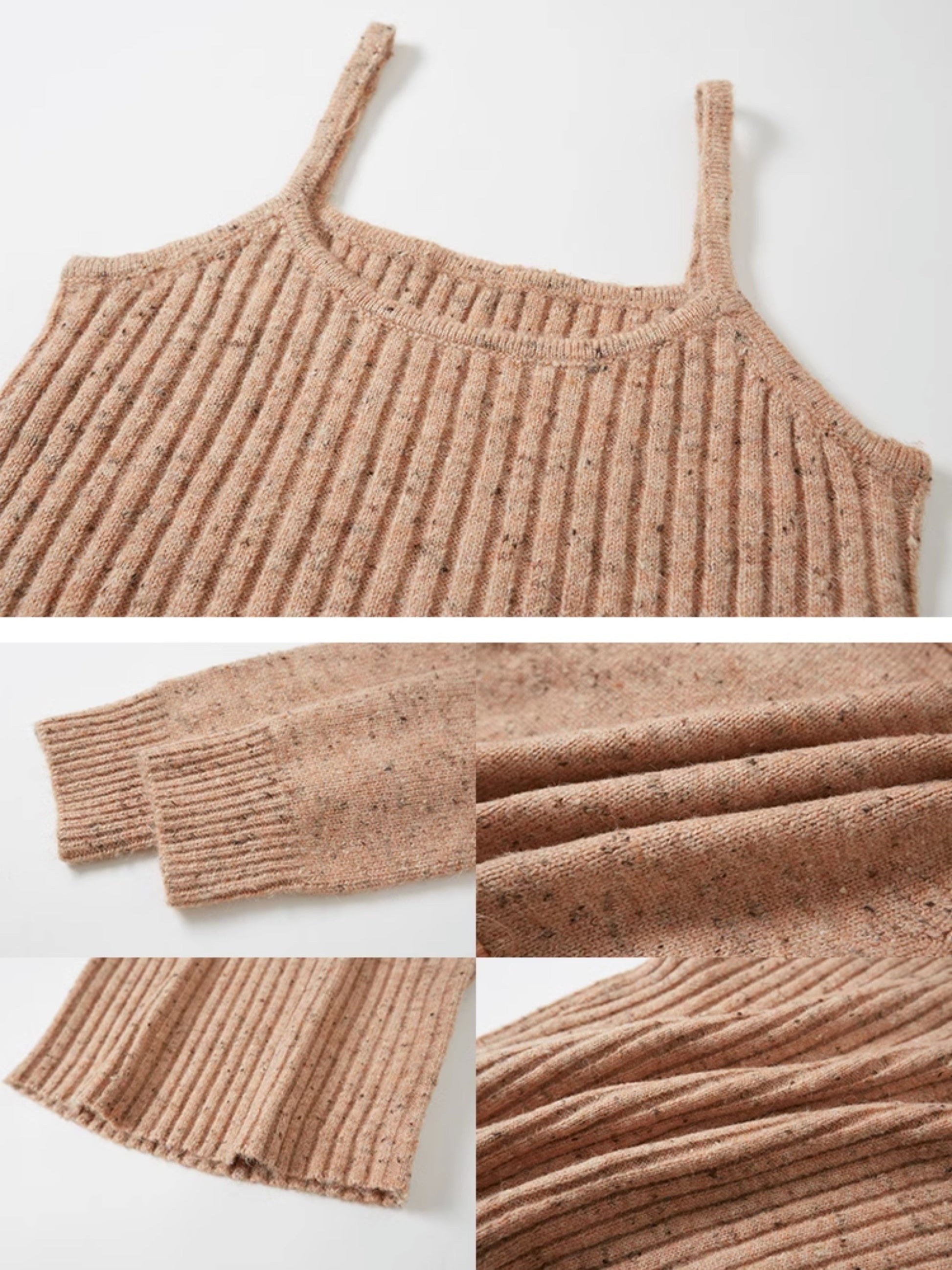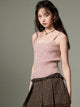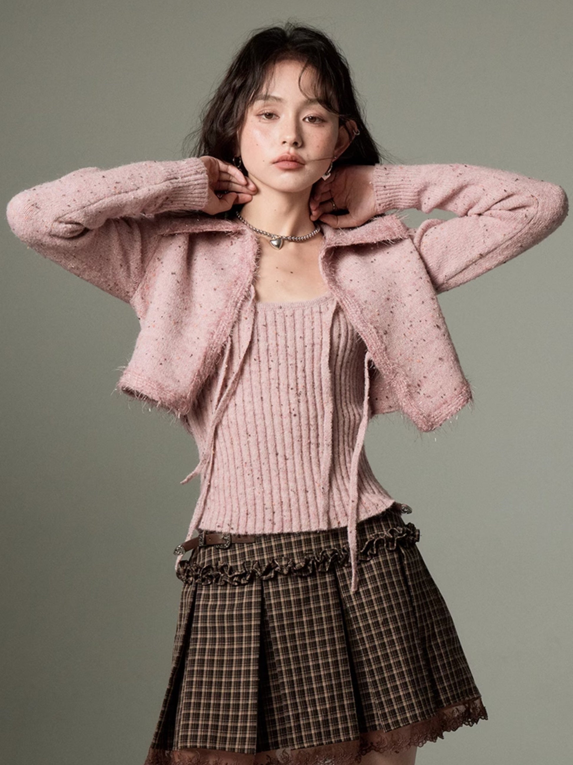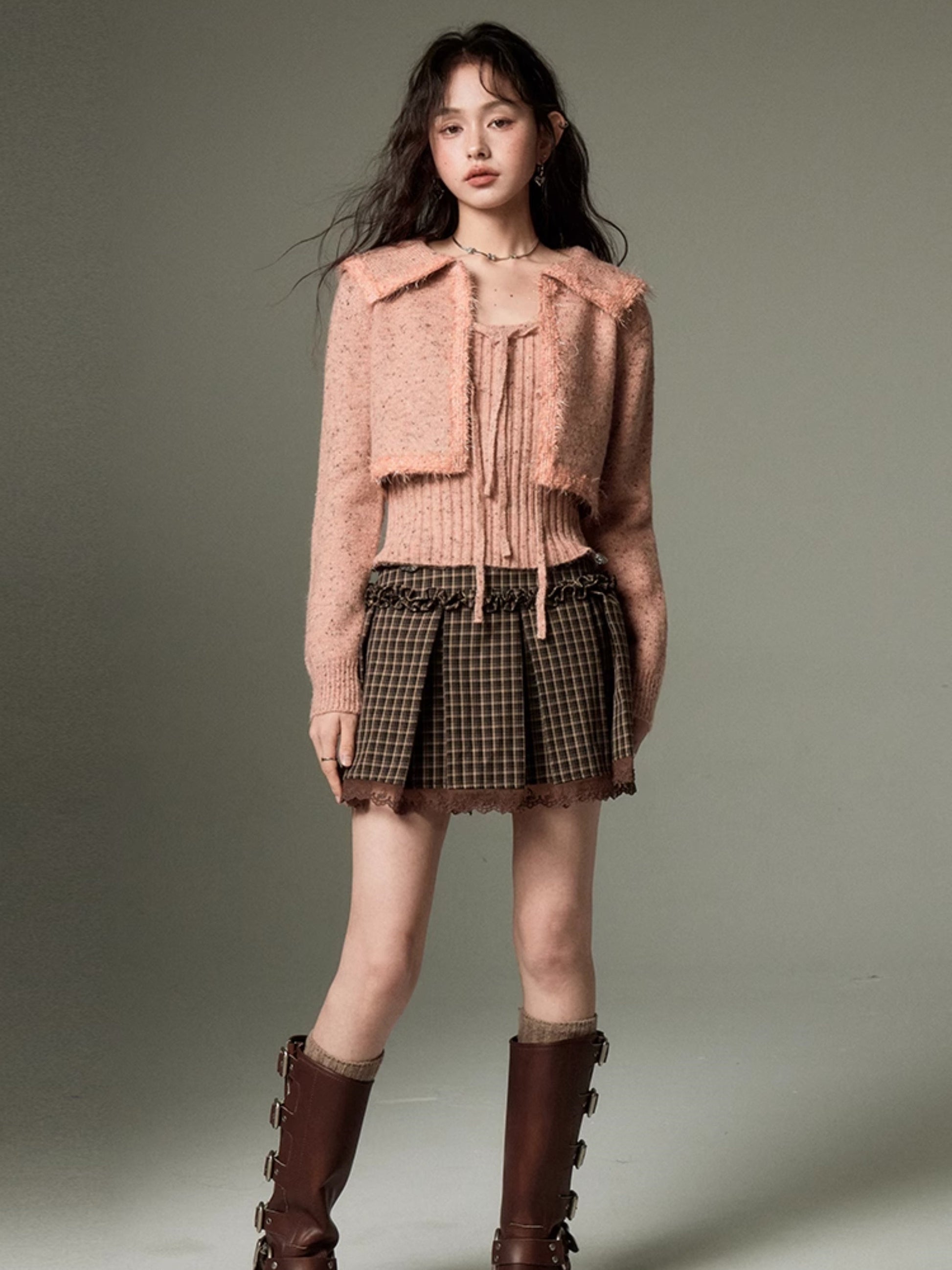 Big Collar Cropped Knitted Cardigan & Camisole Set-up