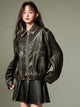 Bowknot Retro Color-Painted Leather Jacket