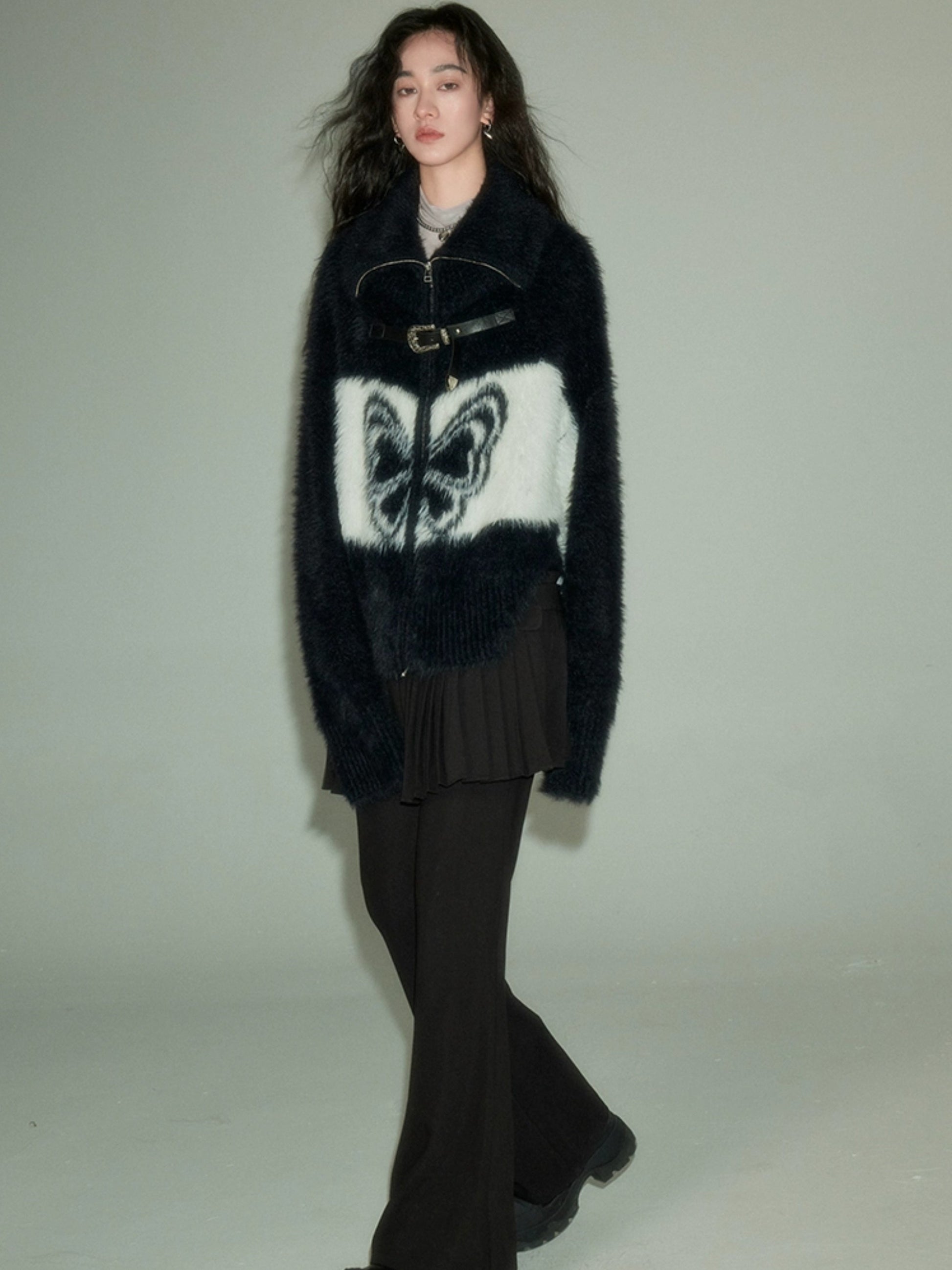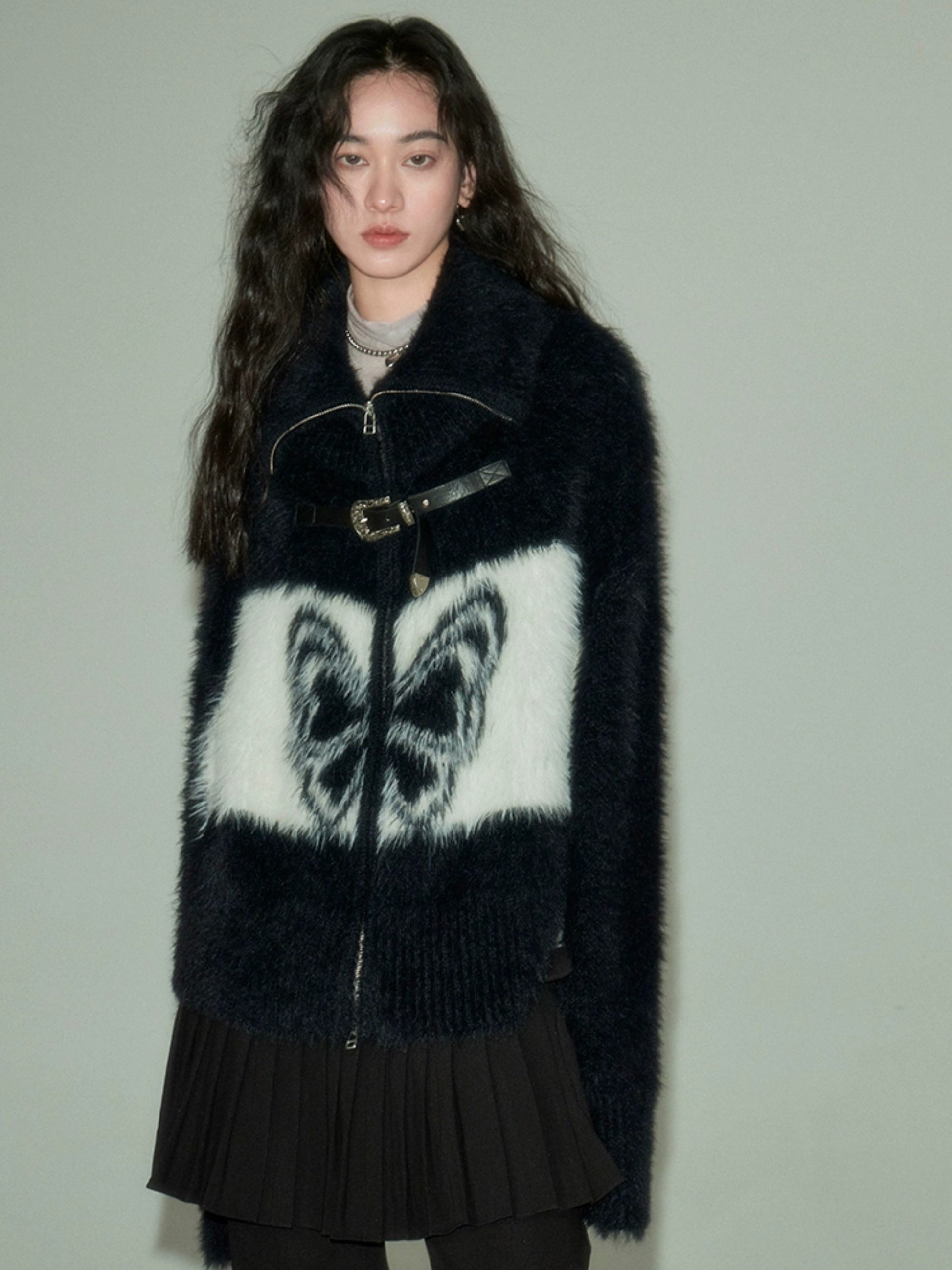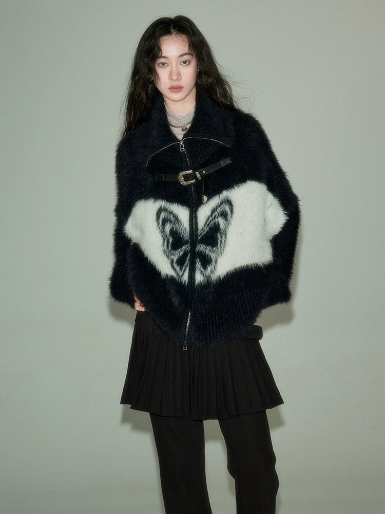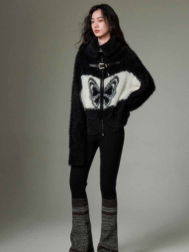Butterfly Pattern Imitation Mink Knitted Cardigan