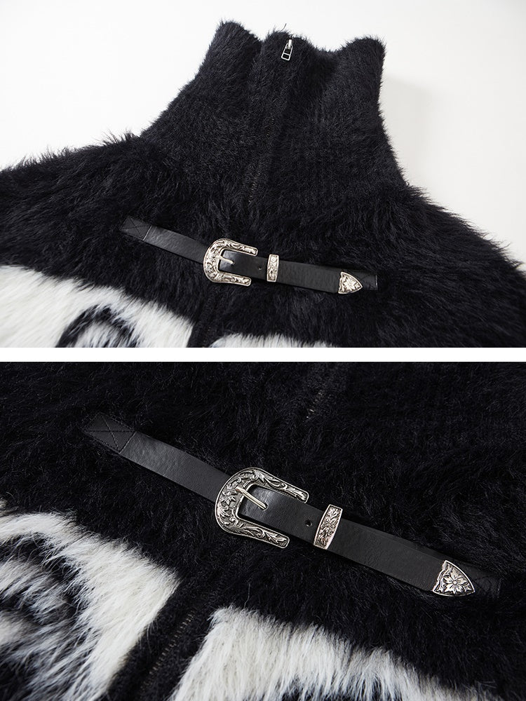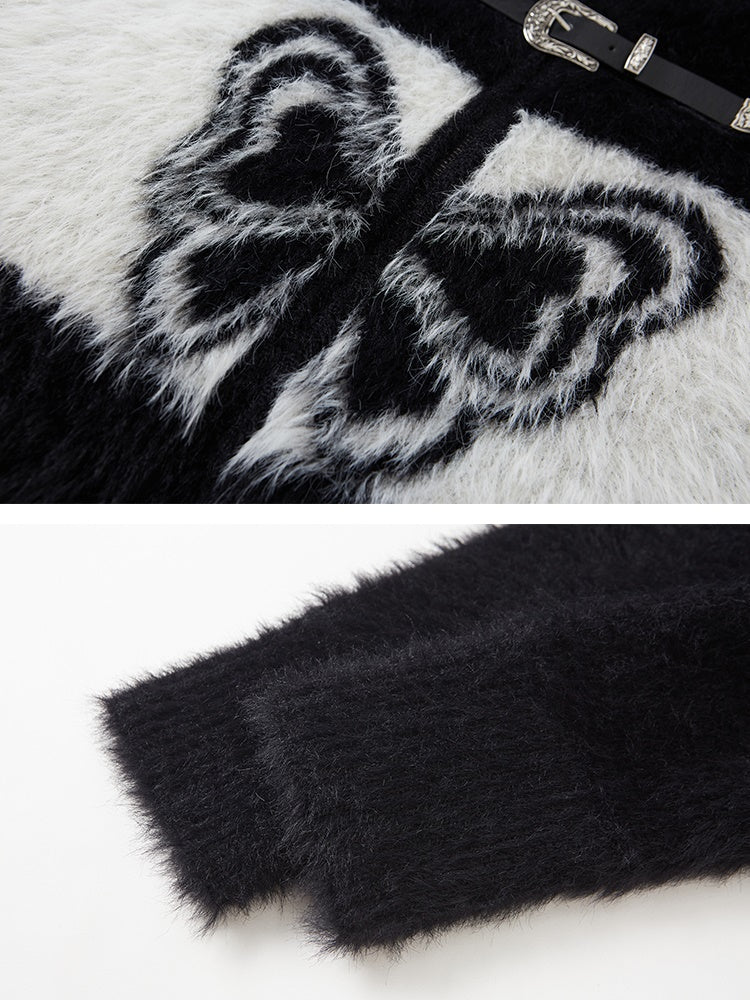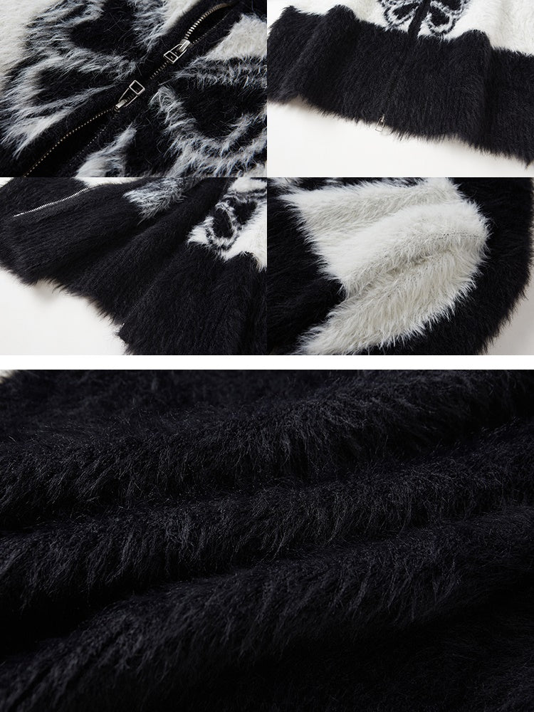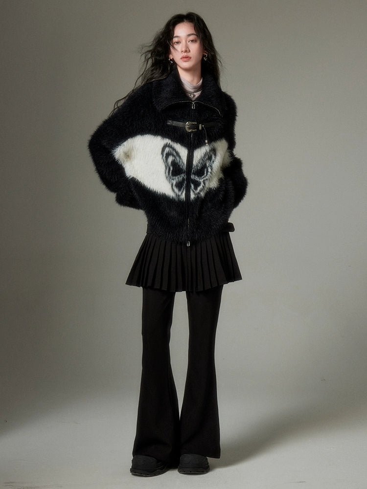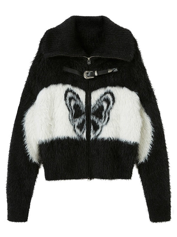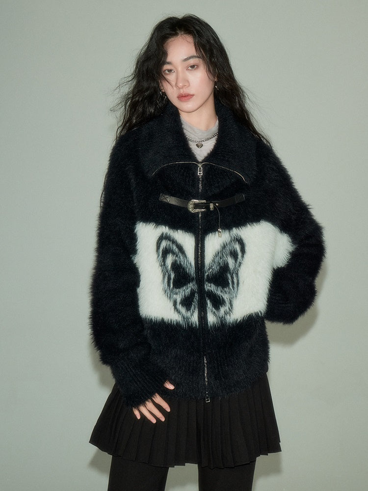 Butterfly Pattern Imitation Mink Knitted Cardigan