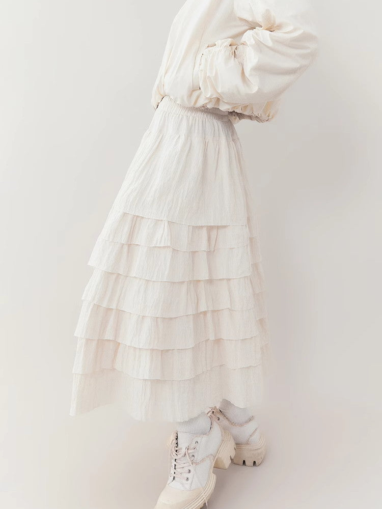 Cake Tiered Natural Retro Cover Long-Skirt