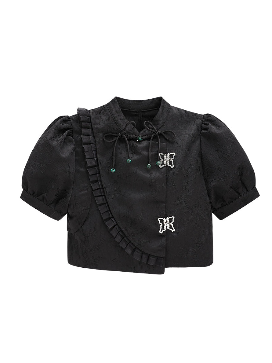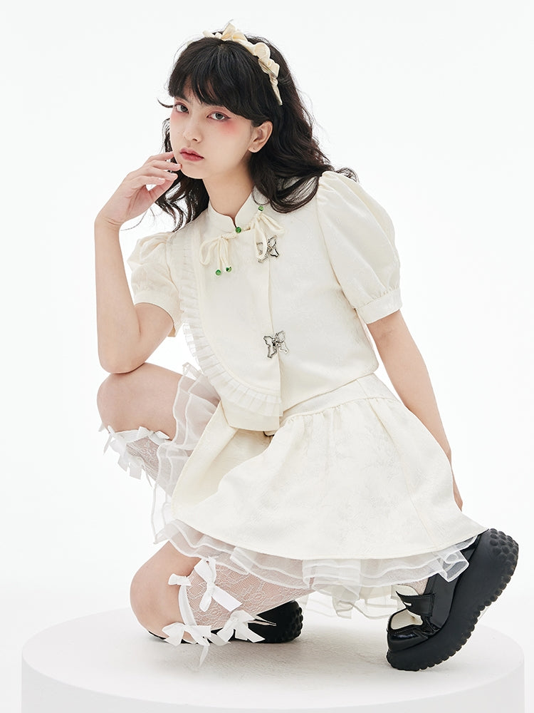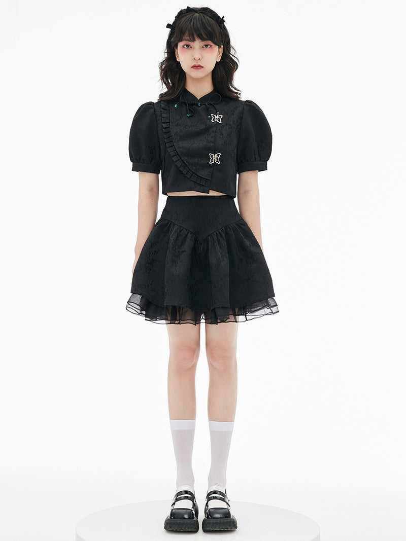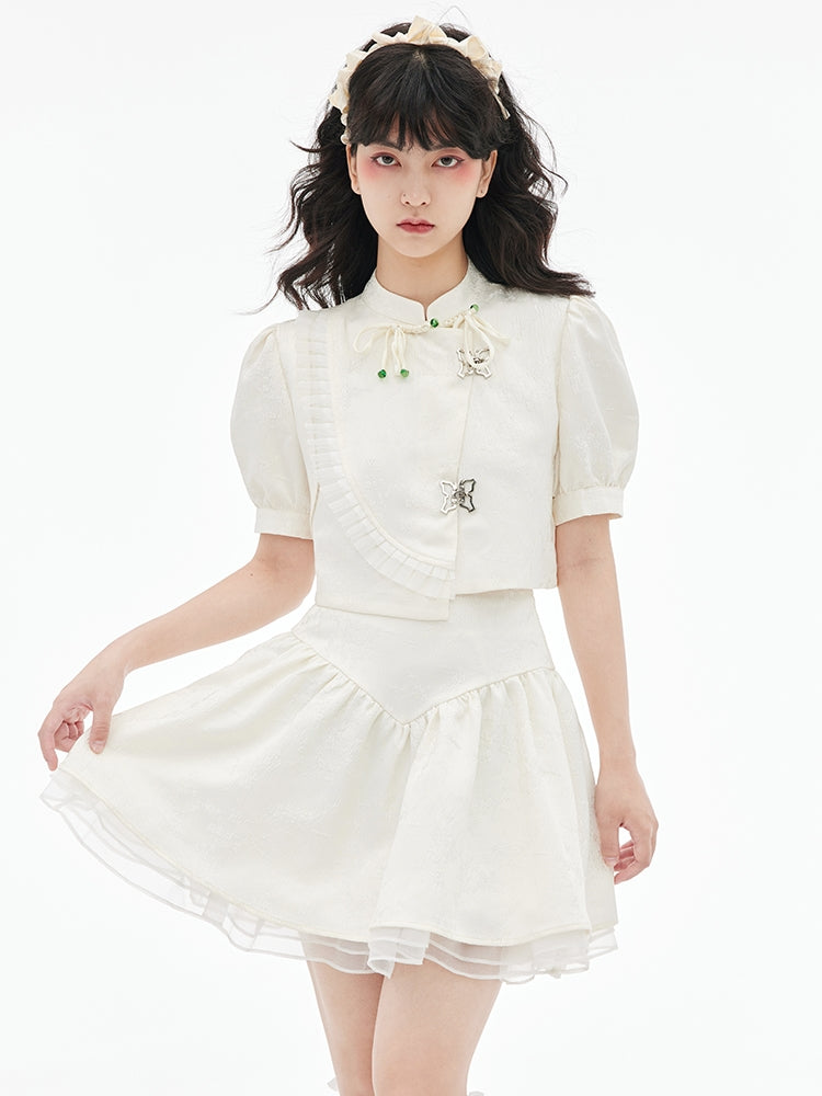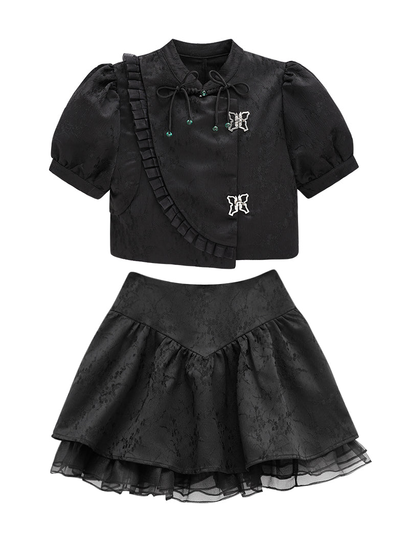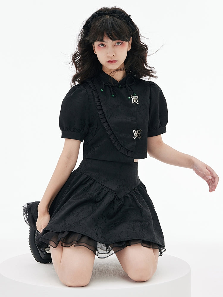 Chinese Style Metal Butterfly Buckle Top & Skirt