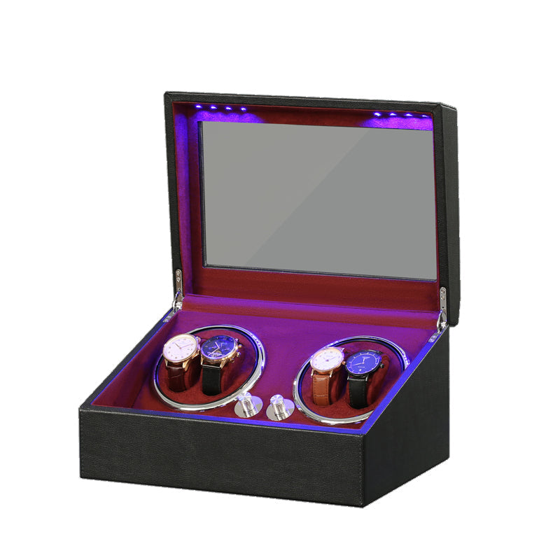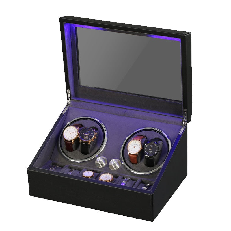 Keep your watches ticking and looking good with ChronoSpin's 4+6 Watch Winding Storage Box.Its silent dual motors ensure your watches stay wound and ready to go, while LED lights make sure they look great! Enjoy a sleek design and plenty of storage space for all your favorite timepieces, all in one stunning box.