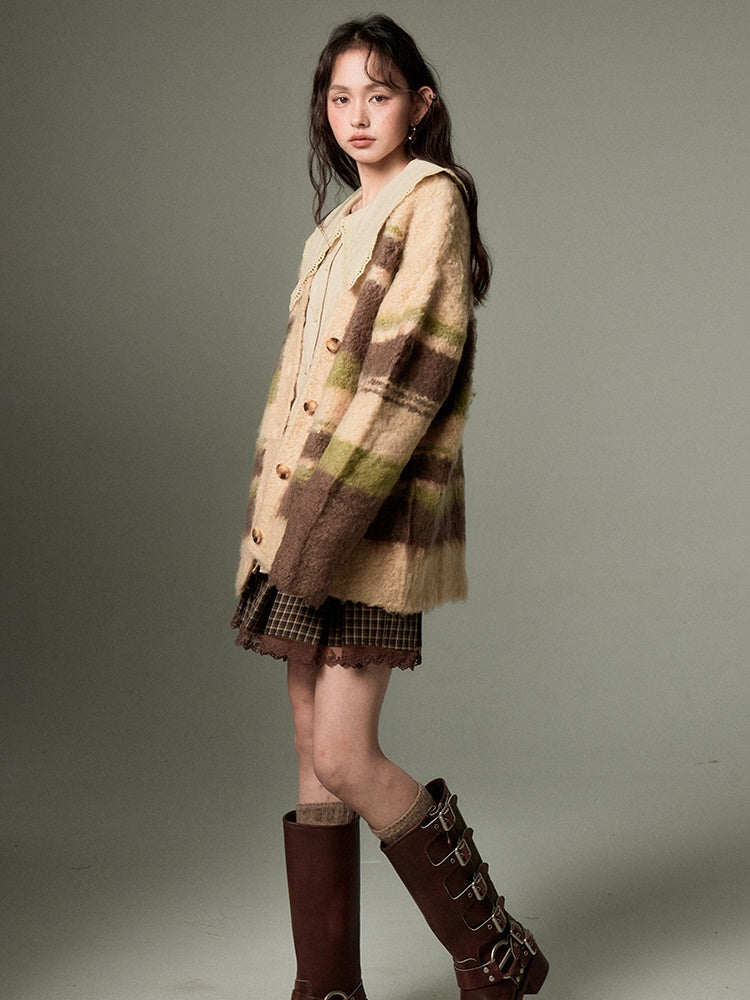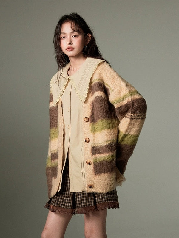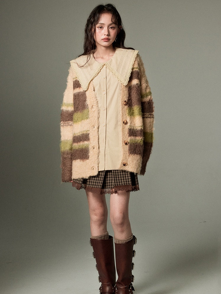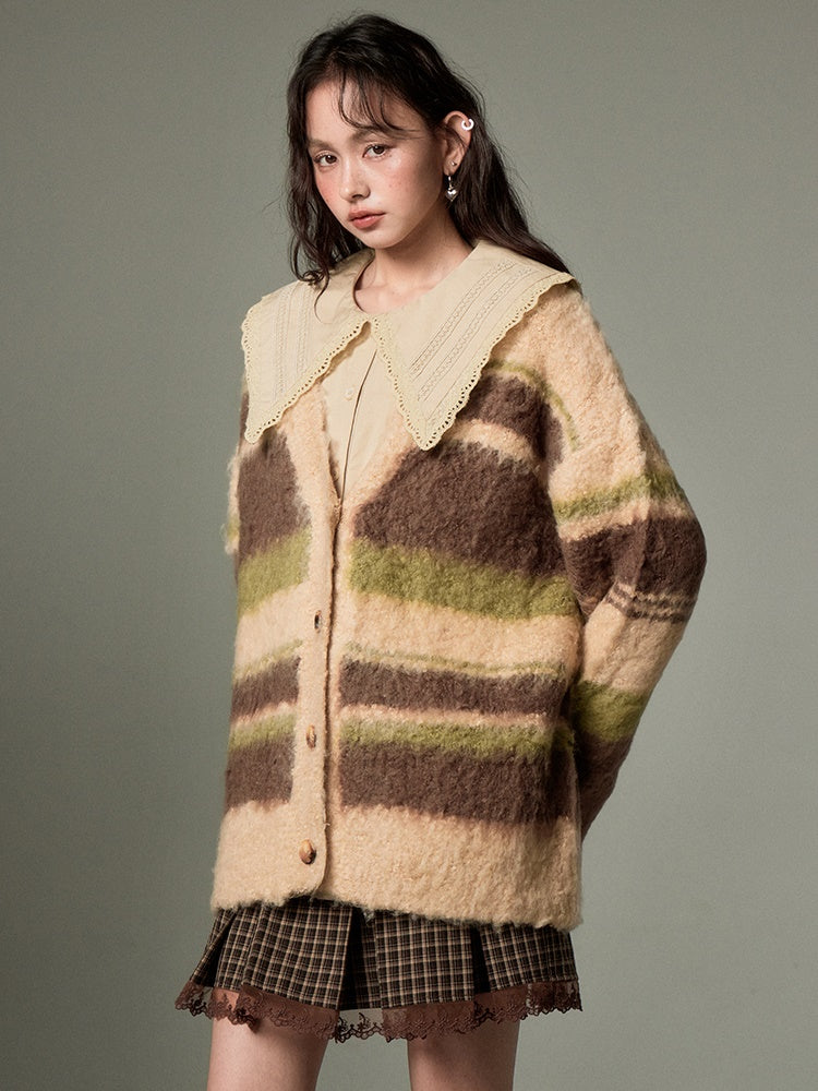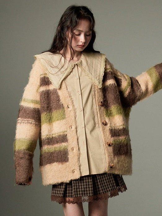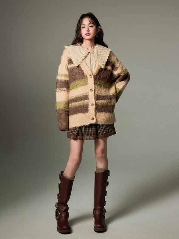 Contrast Border V-neck Knitted Cardigan