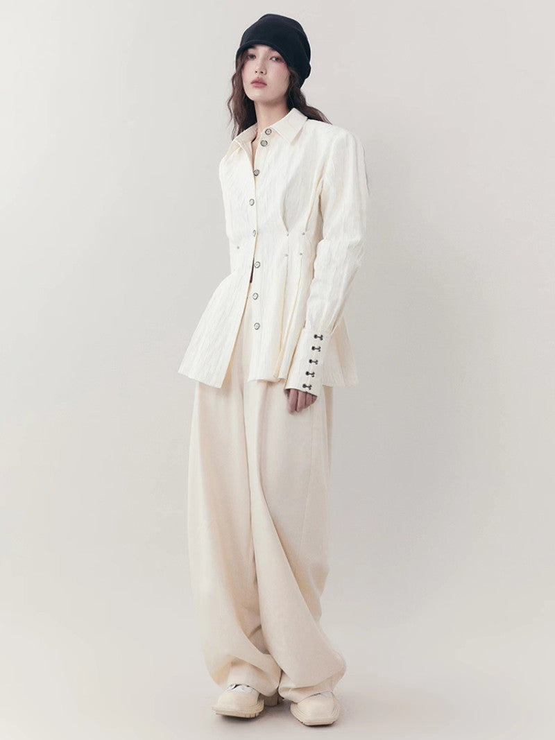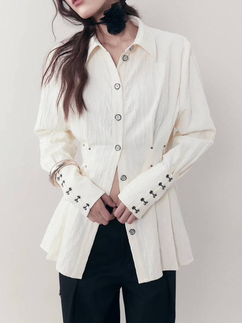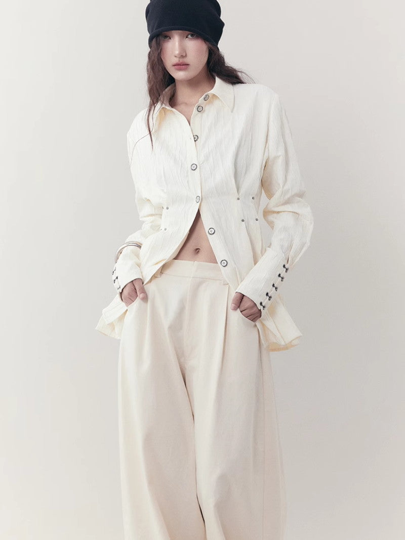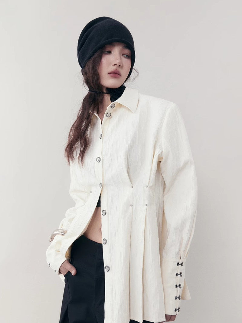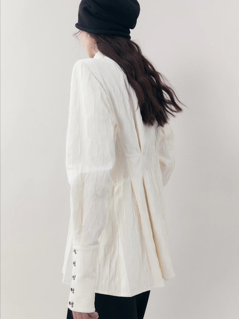 Curve Wrinkled Long-Cuffs Oversize Long-Shirt
