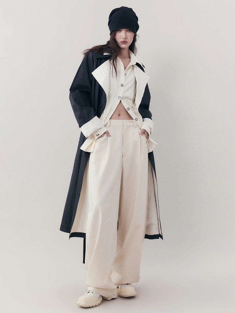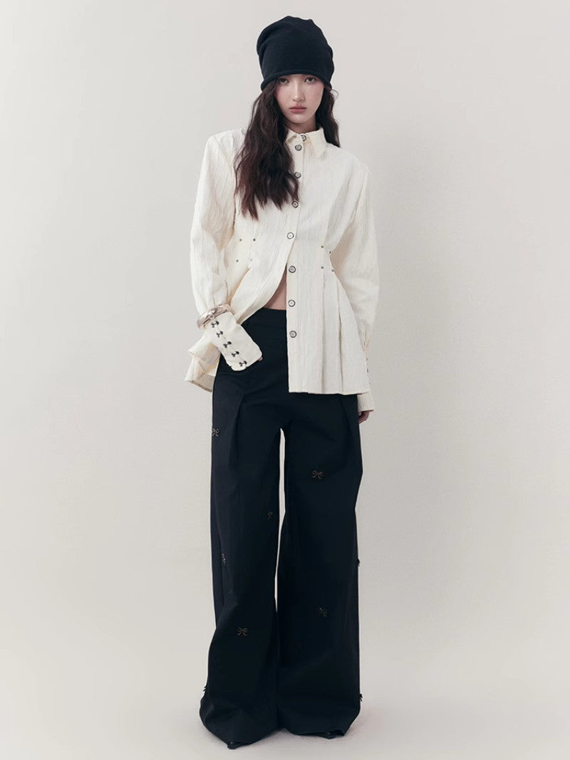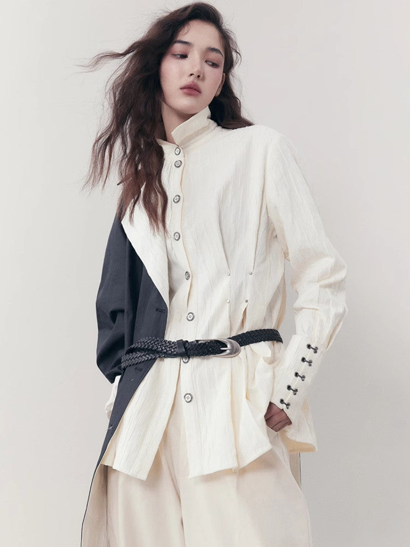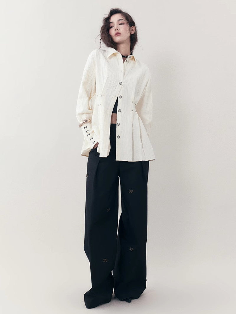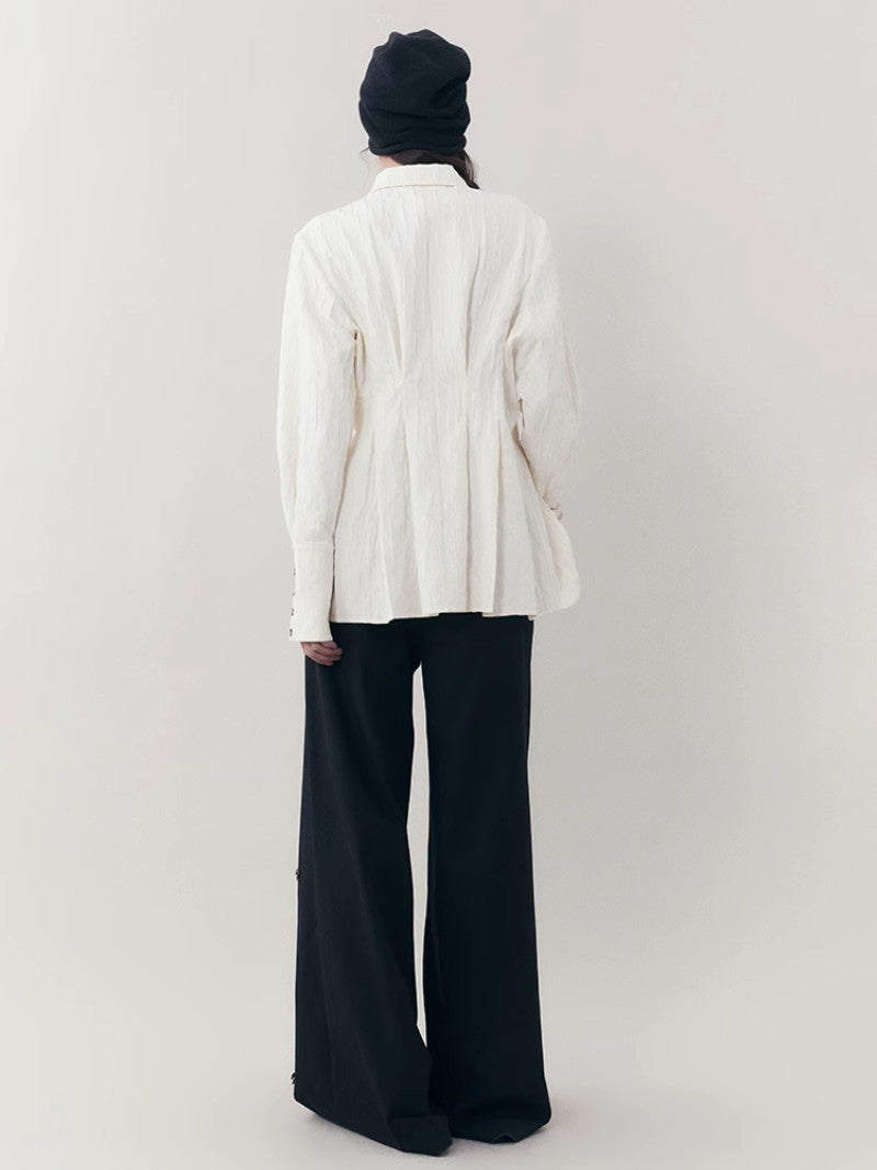 Curve Wrinkled Long-Cuffs Oversize Long-Shirt