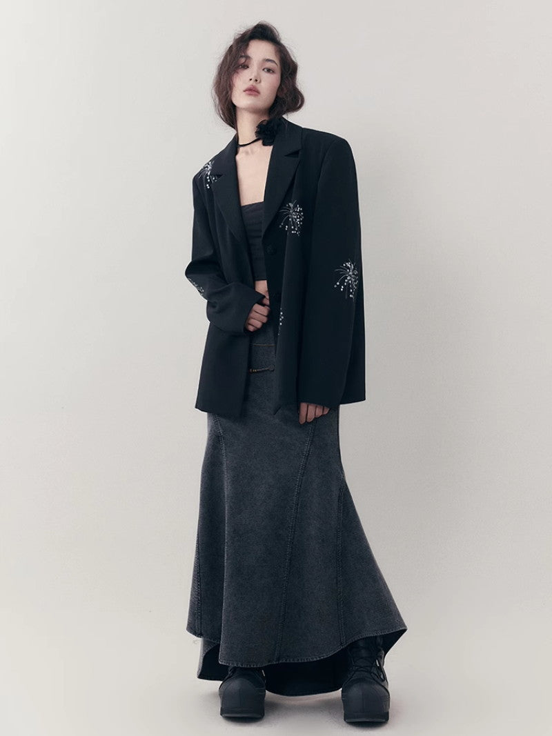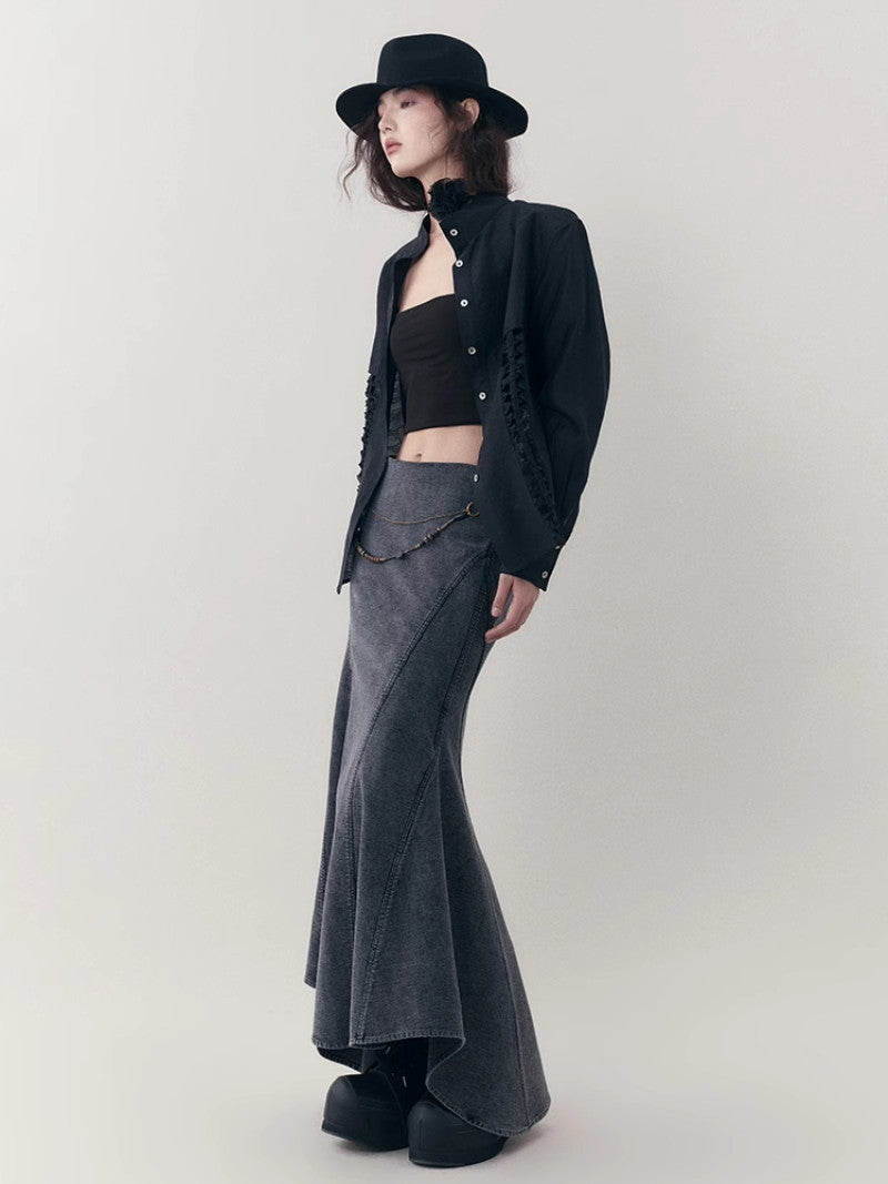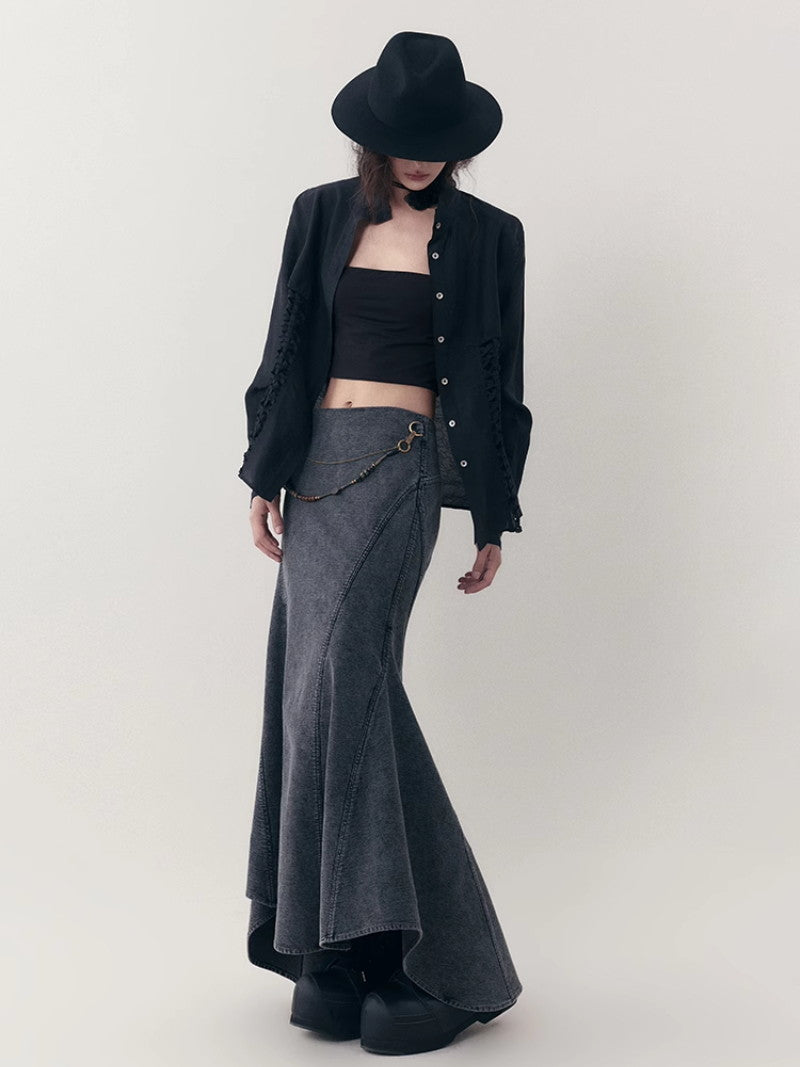 Denim Mermaid Flare Elegant Fish-Tail Long-Skirt
