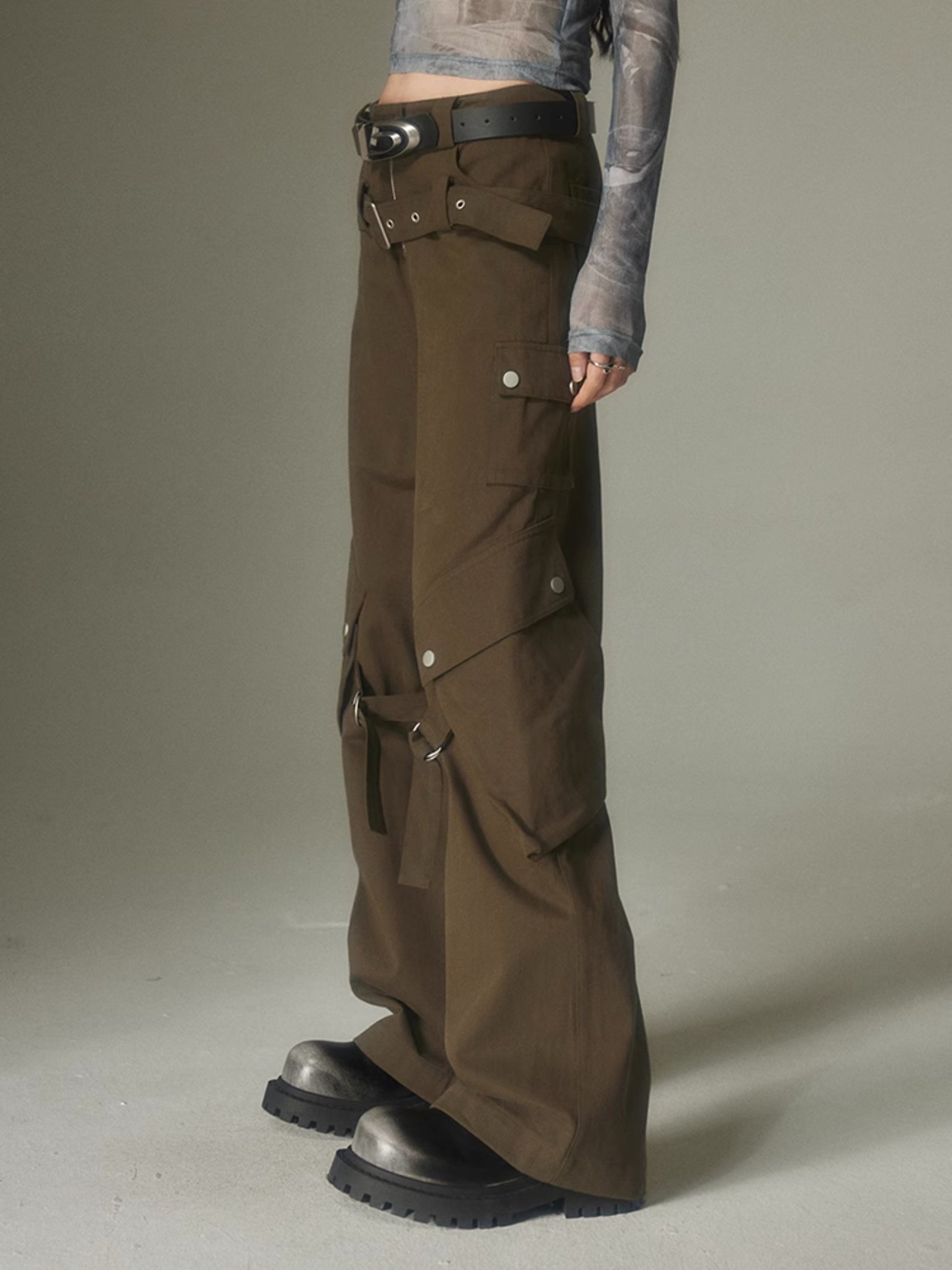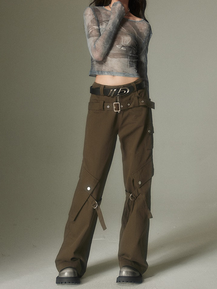 Double Belt Loose Straight Wide Leg Trousers