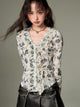 French Niche Floral Lace V-neck Shirt