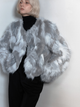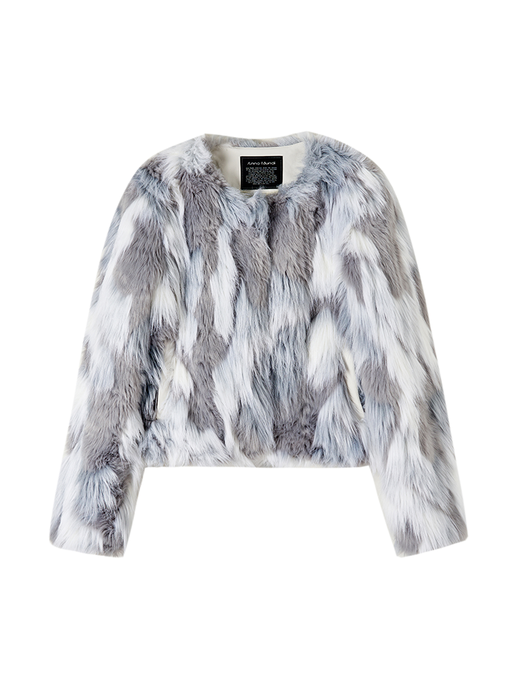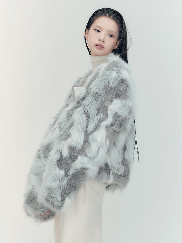 Fur Eleagnt Bi-Color No-Collar Jacket