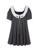 Girly Checked College Pleats Flare One-piece