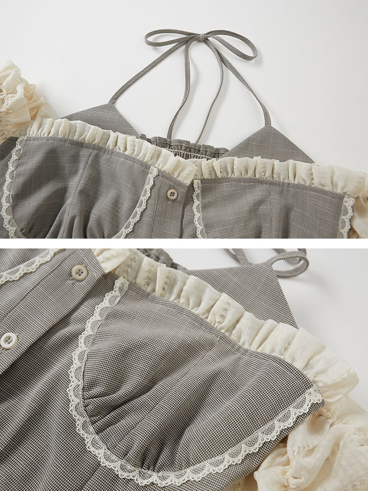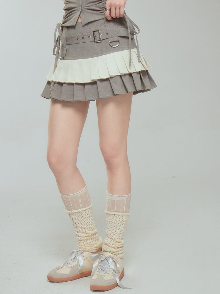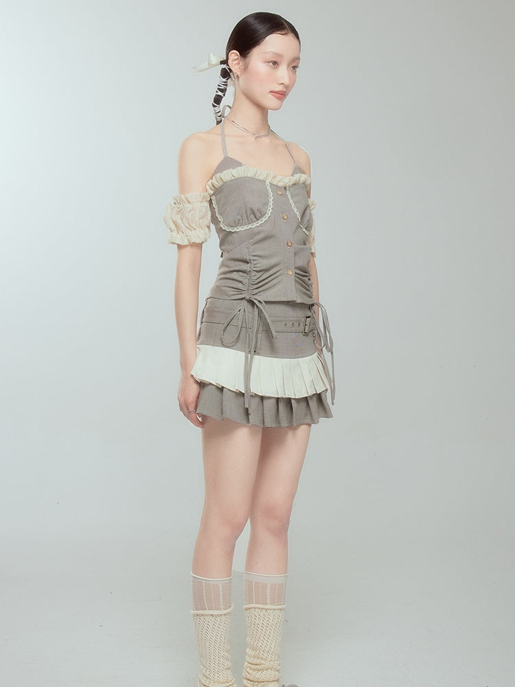 Halter Neck Suspender Top & Short Pleated Cake Skirt