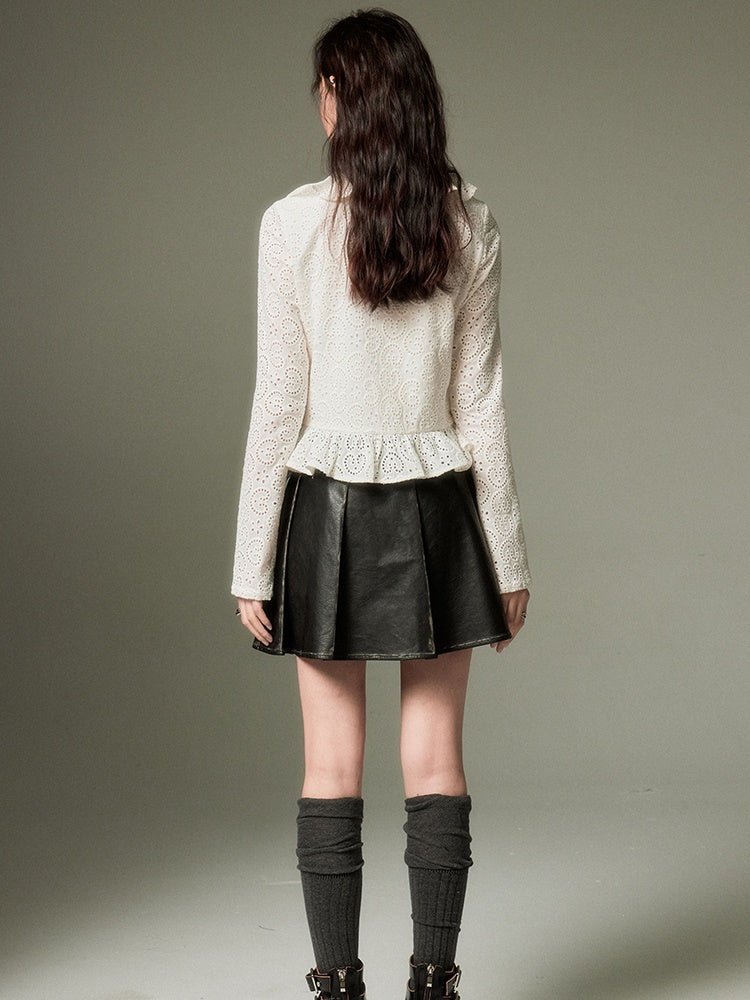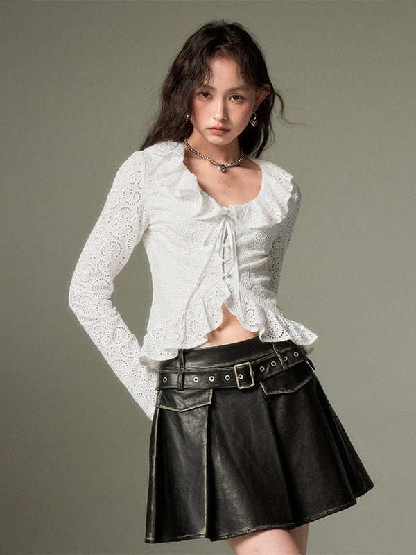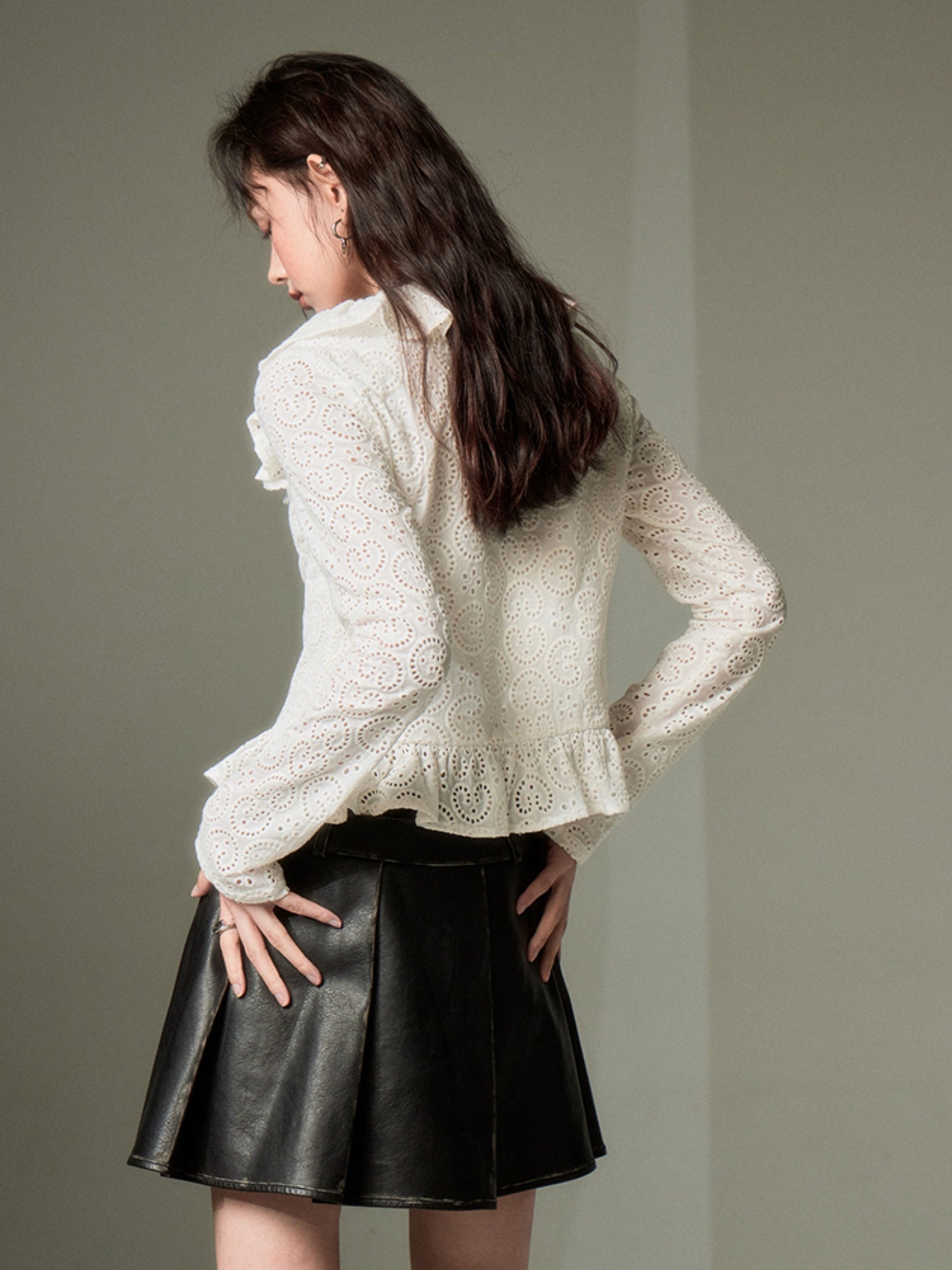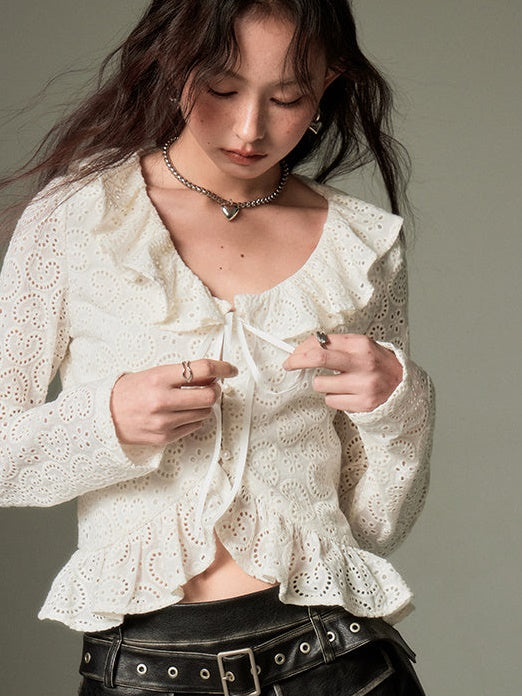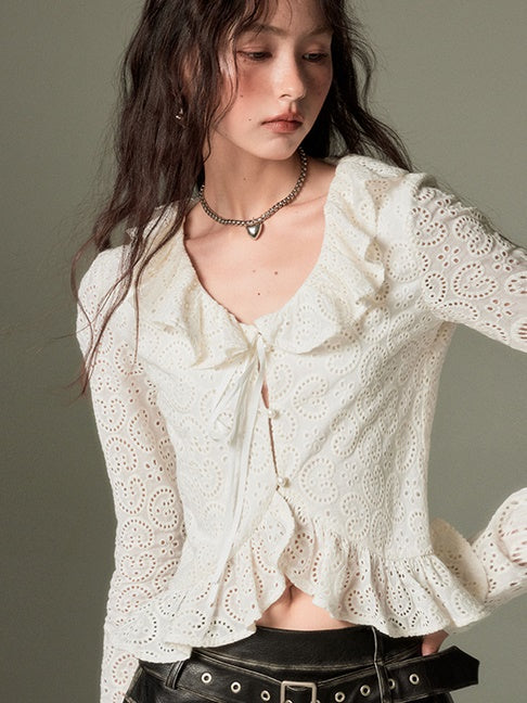 Hollow Frill Collar Lace Top