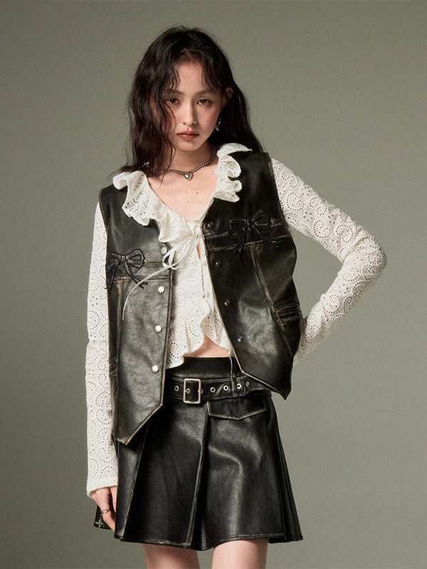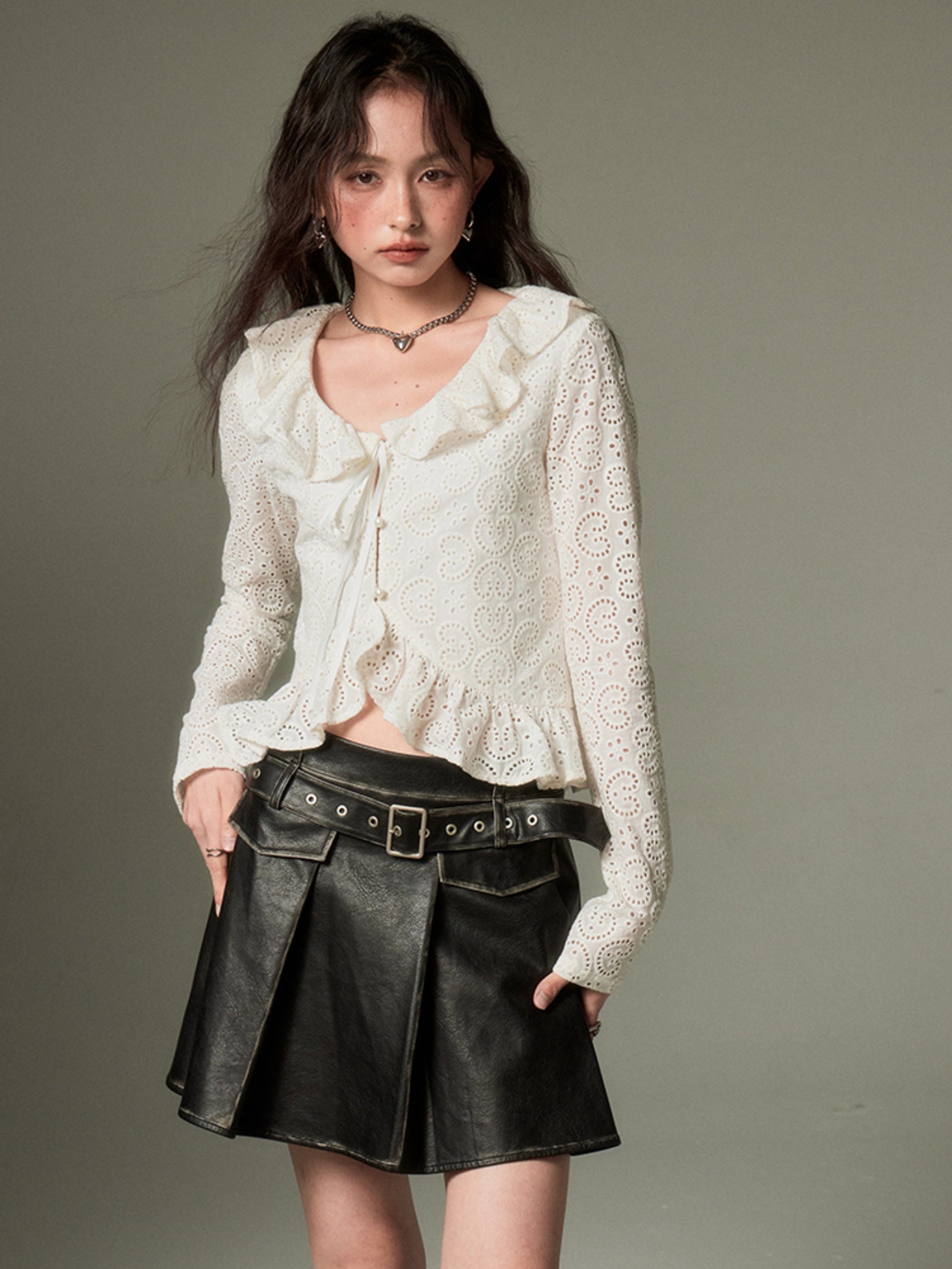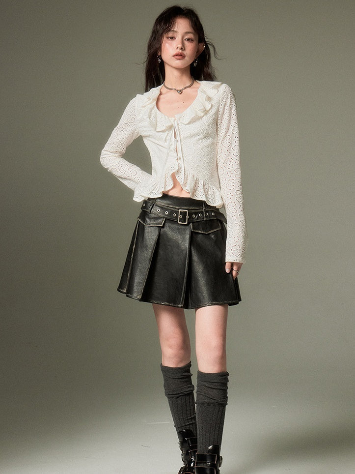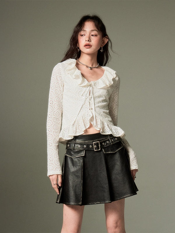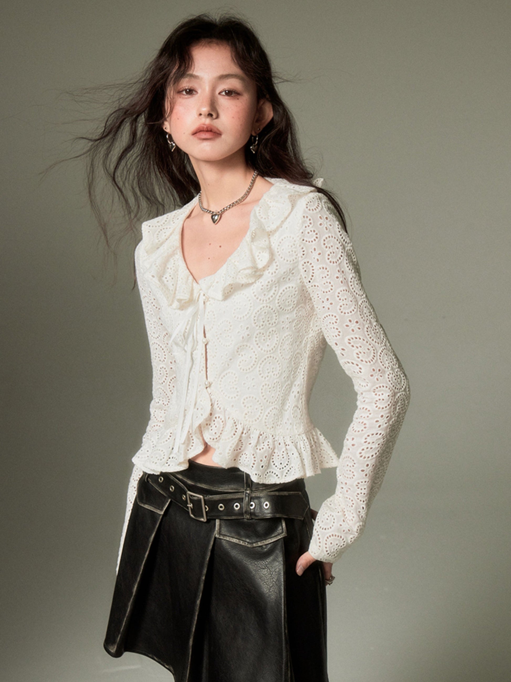 Hollow Frill Collar Lace Top