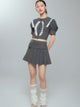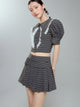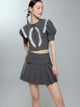 Lace Checked Girly Pleats Blouse&Short-Skirt