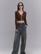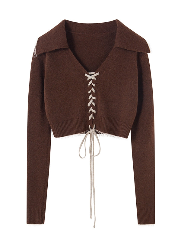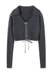 Lace-up V-neck Retro Cropped Knit