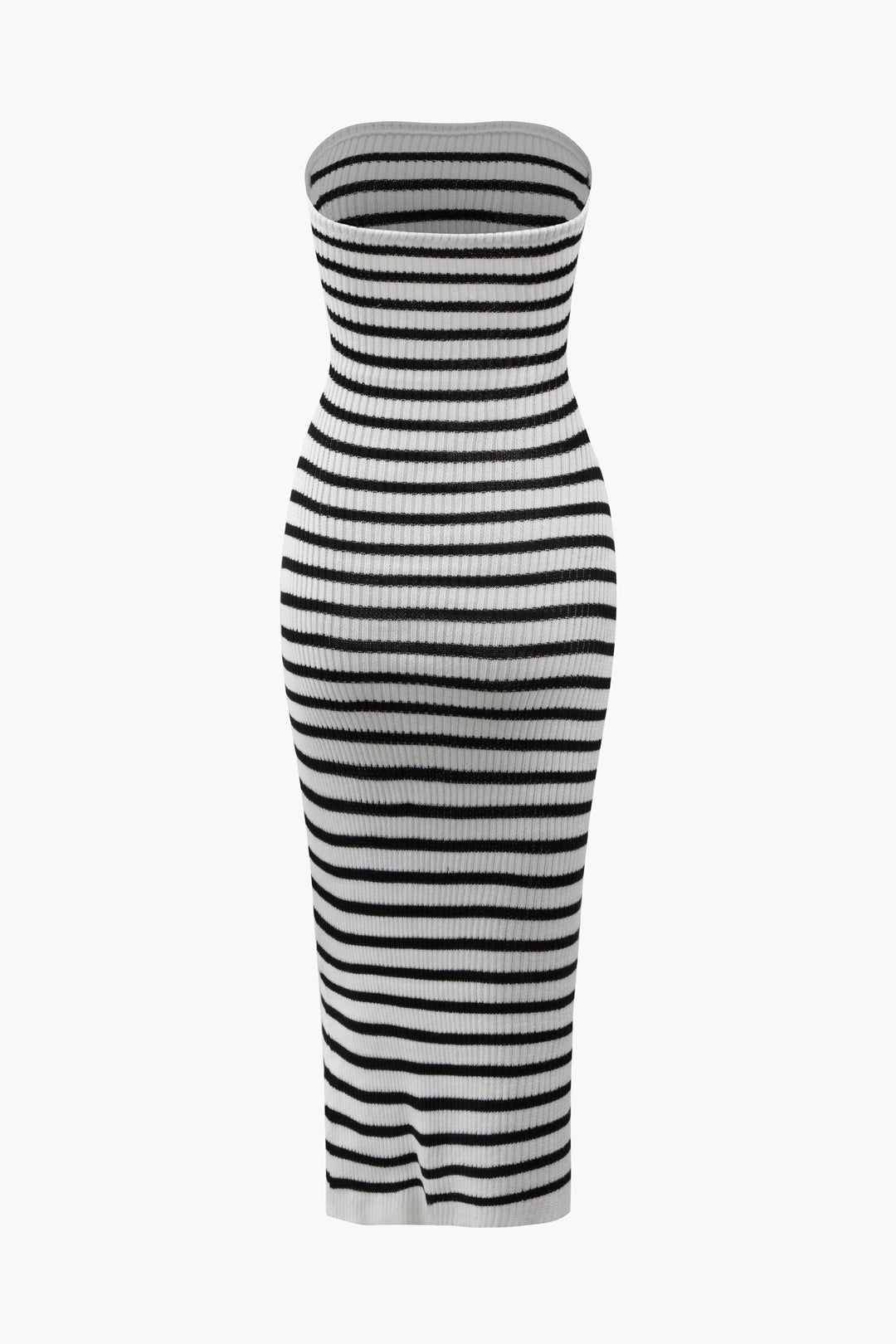 Stripe Cut Out Knit Strapless Midi Dress