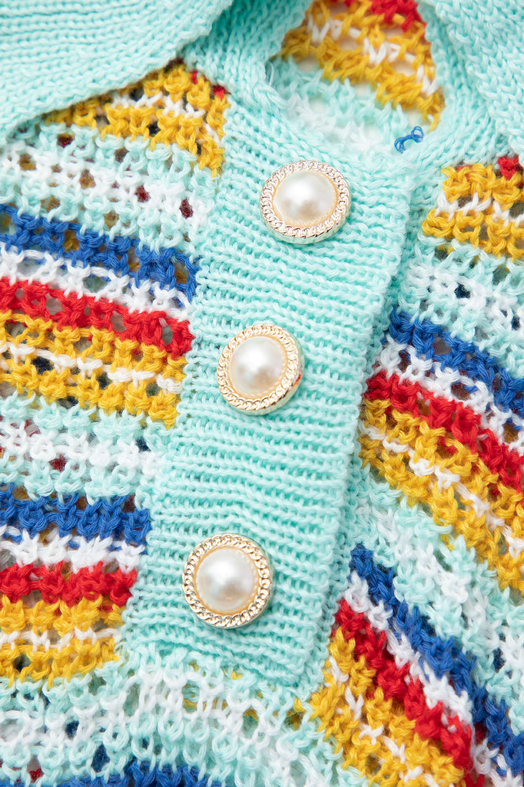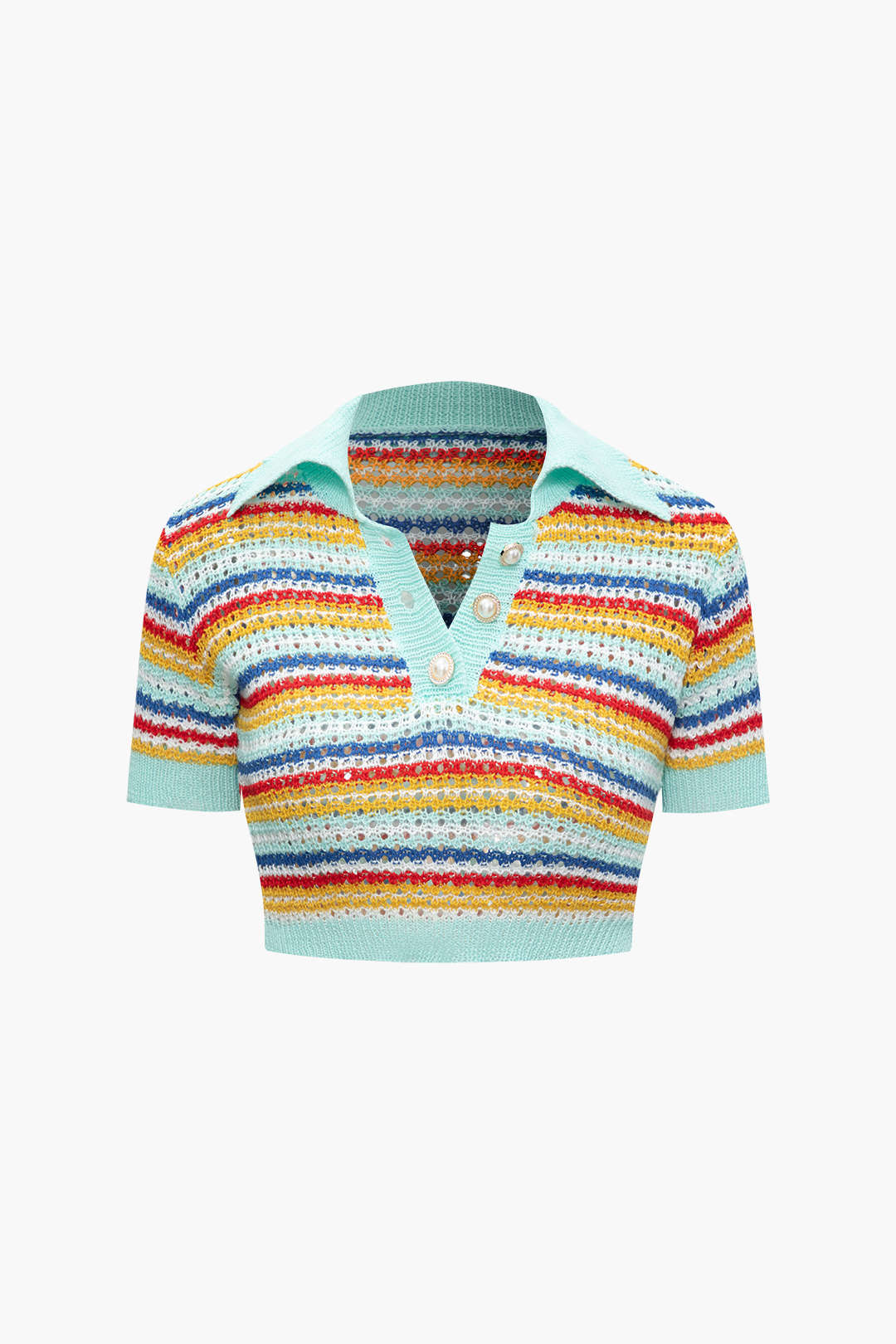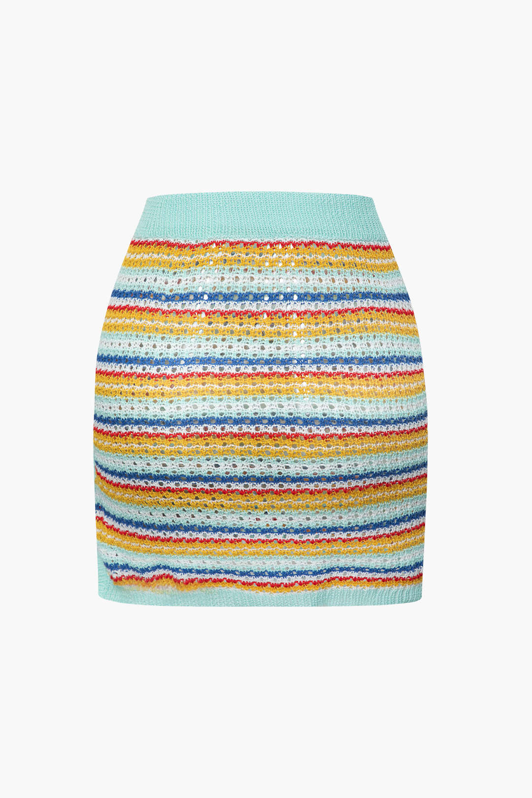 Stripe Open Knit Crop Top And Slit Mini Skirt Set