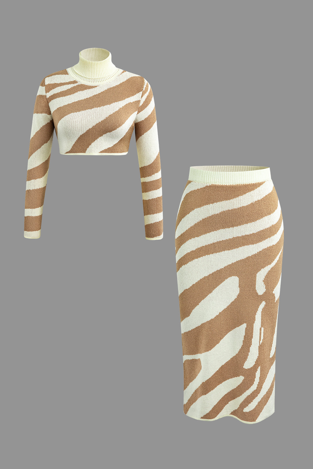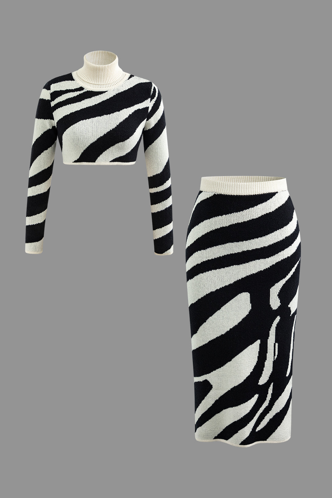 Stripe Knit Turtleneck Long Sleeve Crop Top And Midi Skirt Set