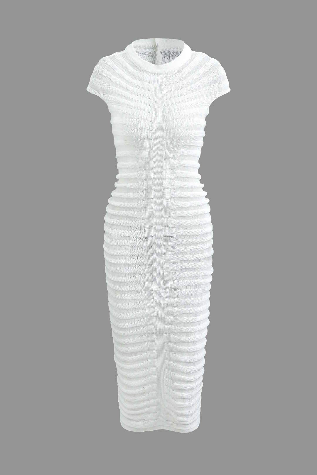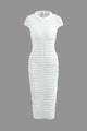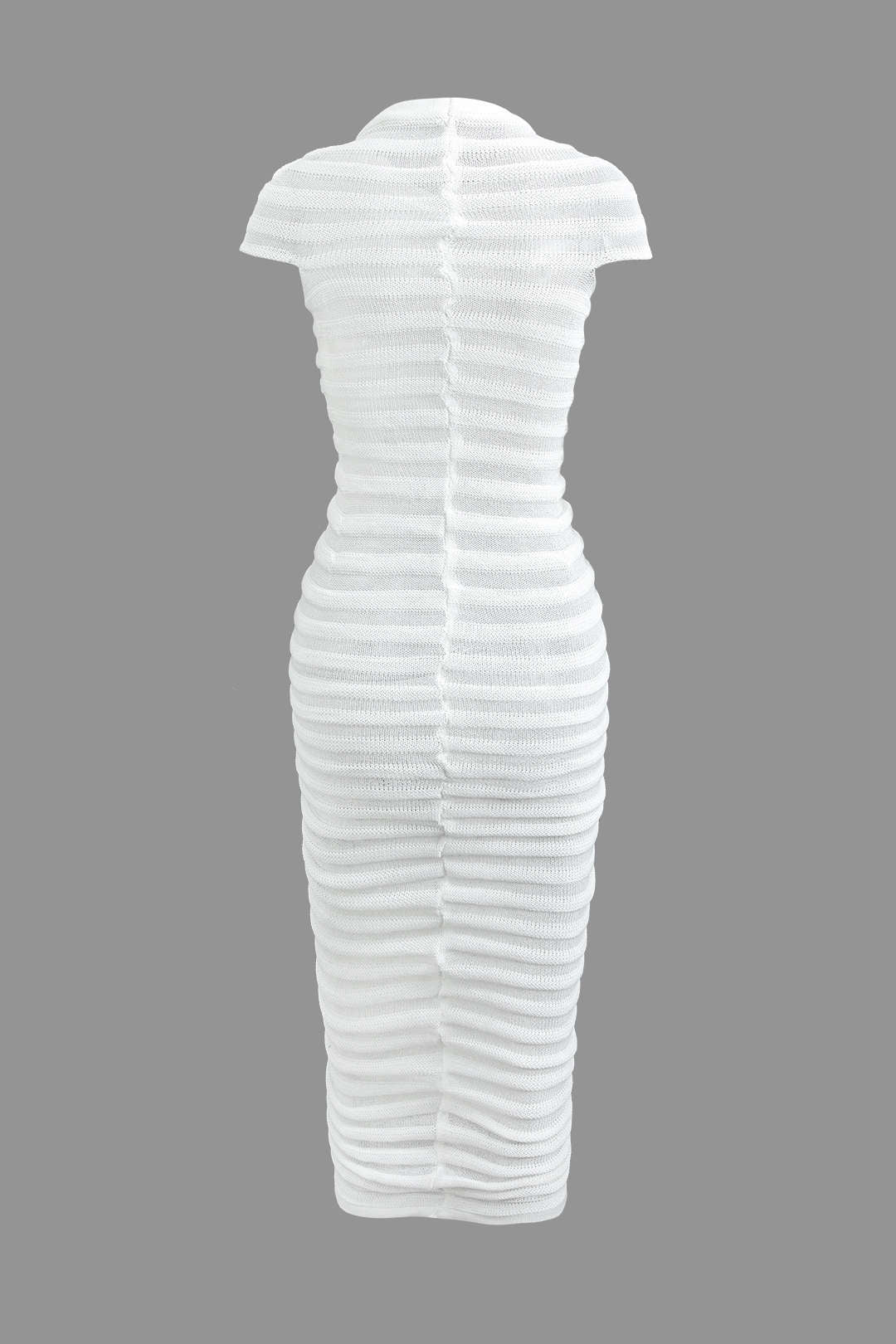 Mock Neck Knit Stripe Short Sleeve Maxi Dress