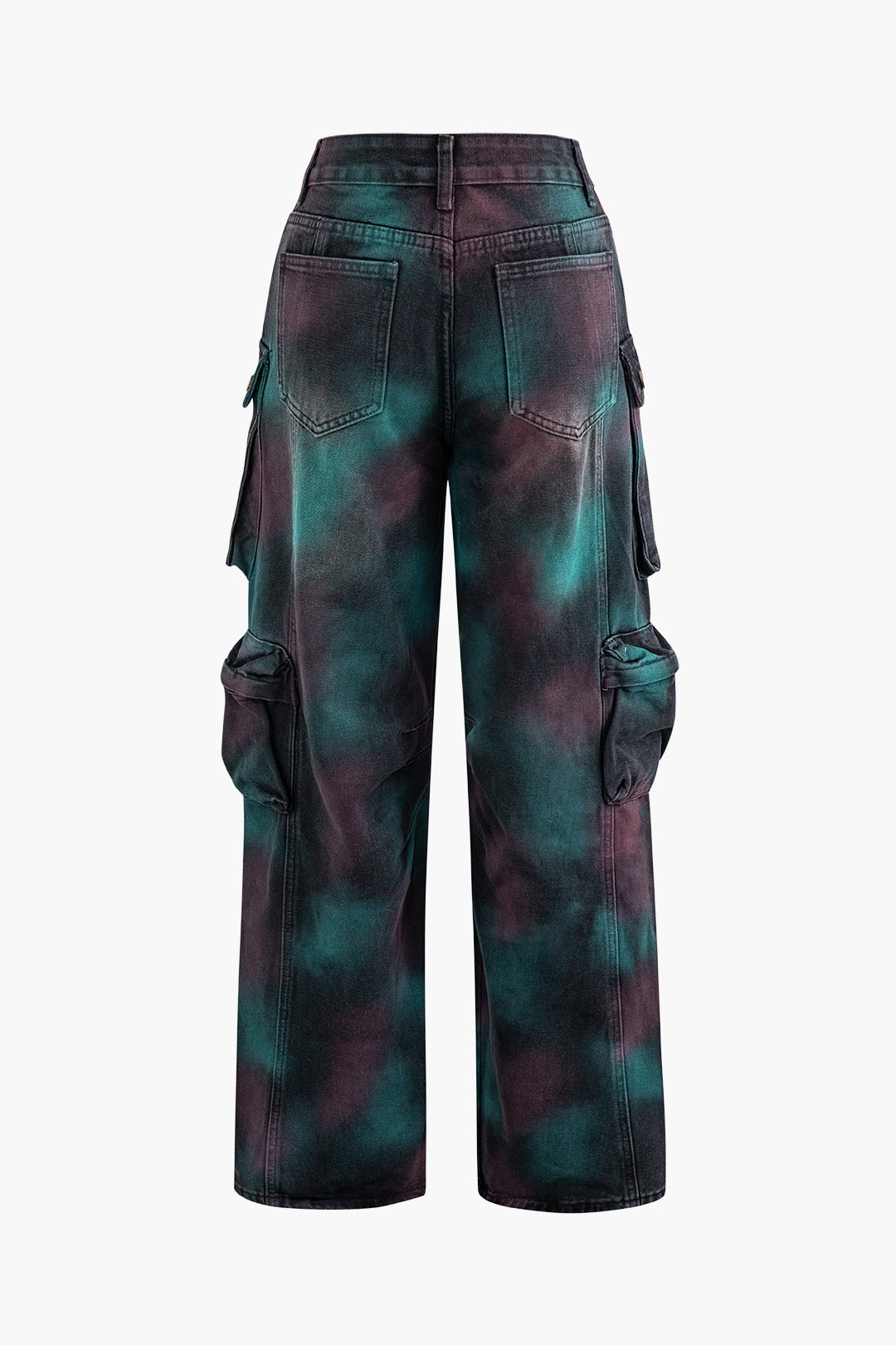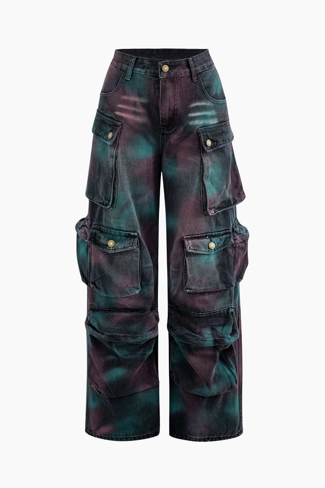 Tie Dye Multi Pocket Straight Leg Cargo Jeans