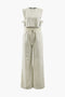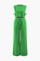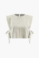 Linen Padded-Shoulder Tie Side Top And Drawstring Pants Set