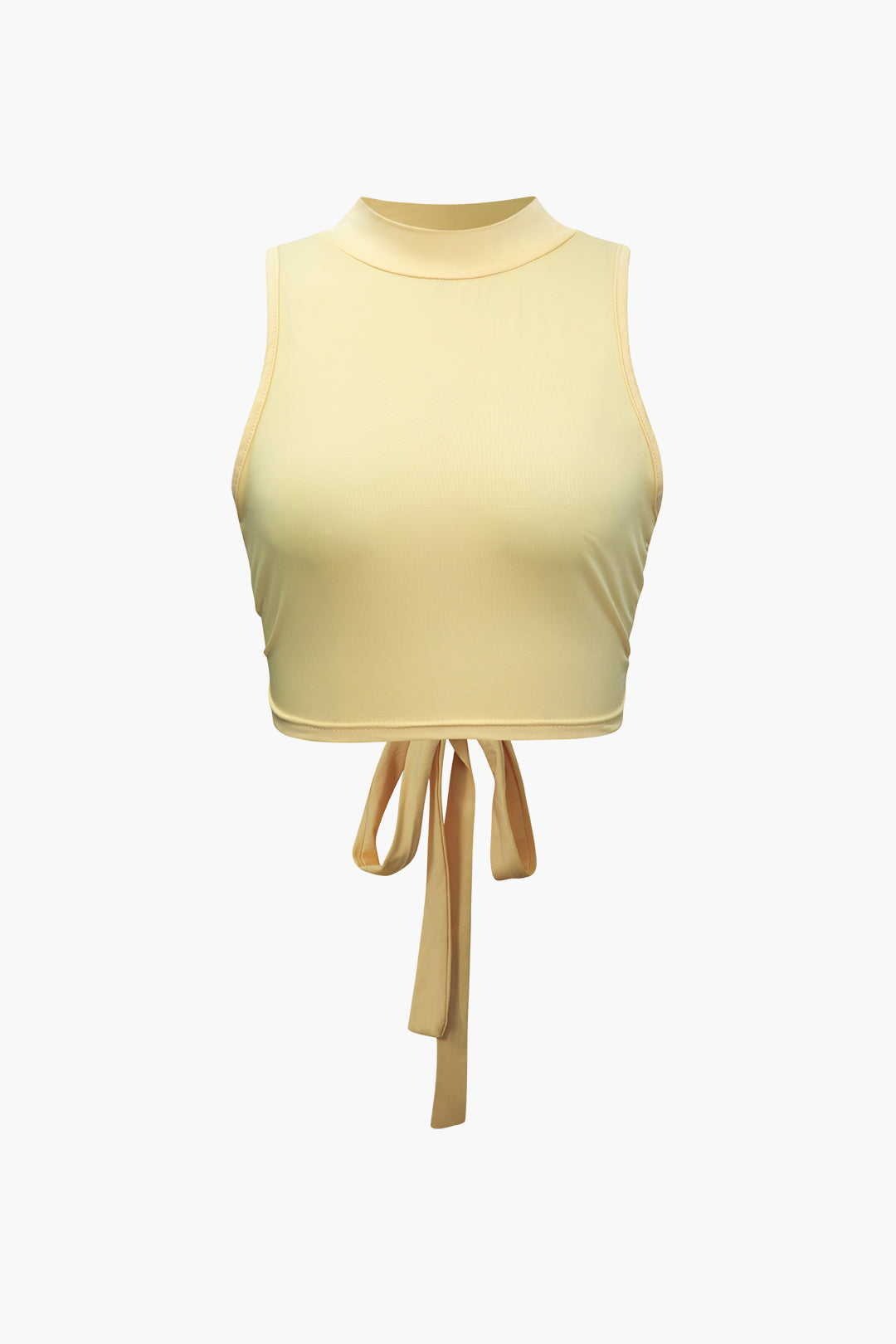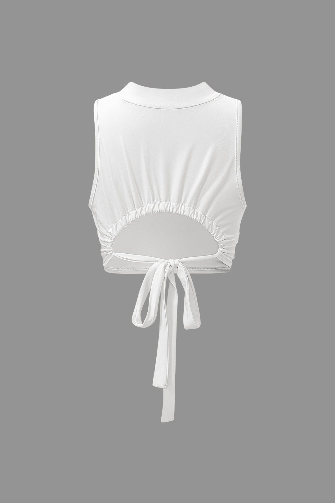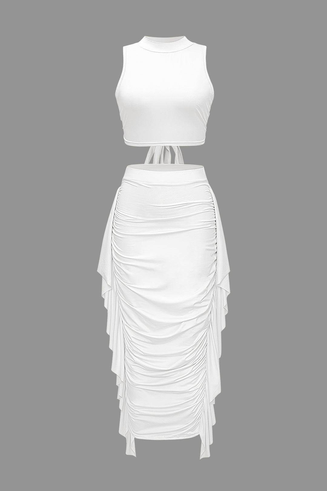Tie Back Tank Top And Ruched Ruffle Skirt Set