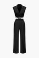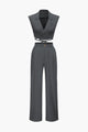 Notched Lapel Tie Back Vest And Straight Leg Suit Pants Set