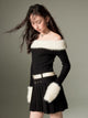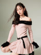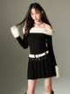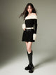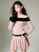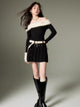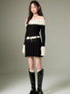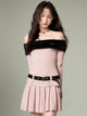 Off-shoulder Knit Double Belt One-piece