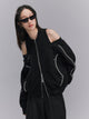 Open-shoulder Double-Zipper Casual Nichi Tops