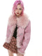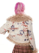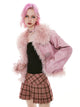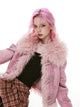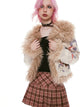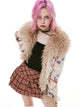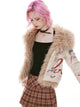 Paint Leather Fur Toggle-Button Vintage Jacket