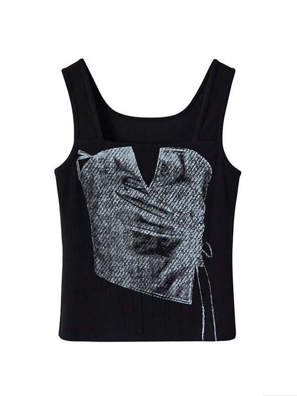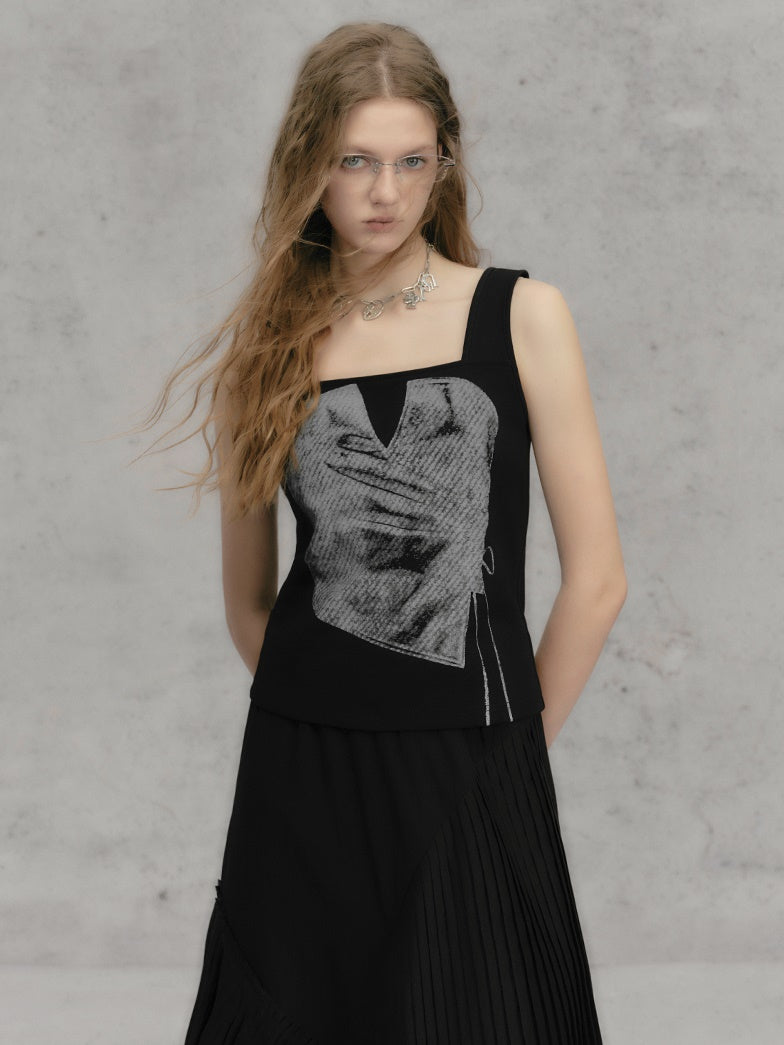 Printing Square Collar Vest