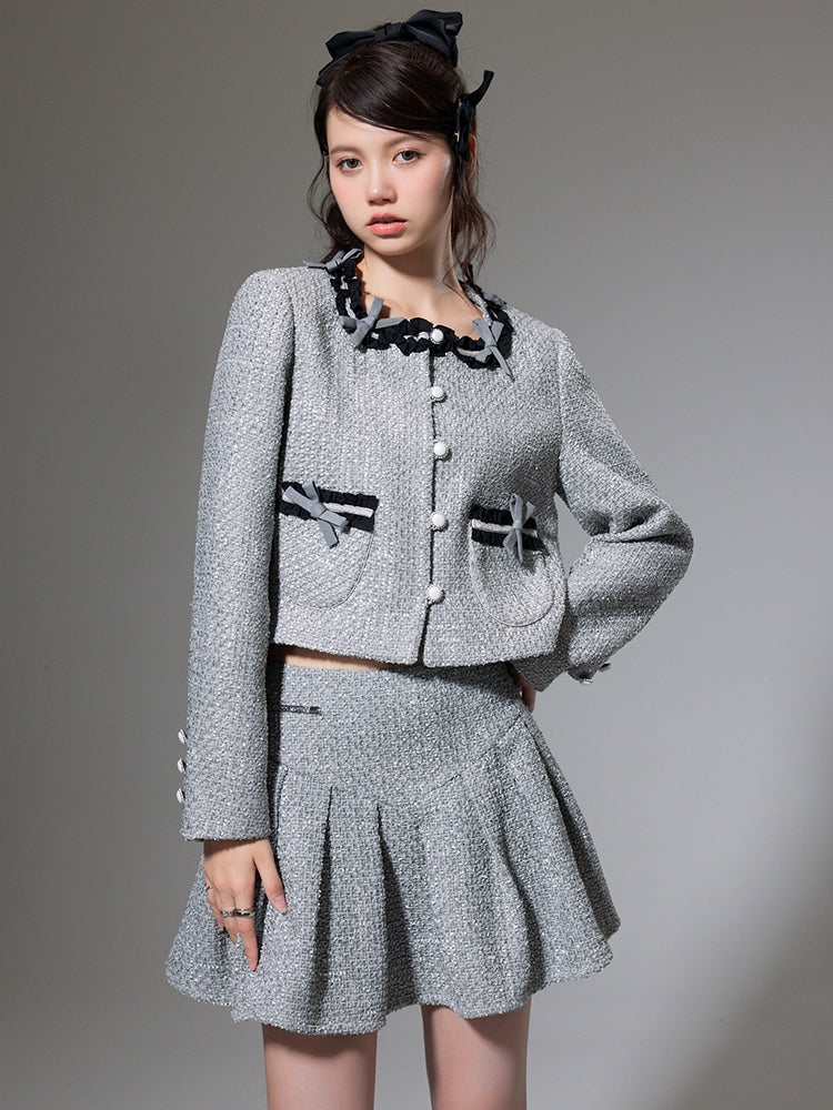 Small Fragrance Bow Cardigan Jacket & Pleated Skirt