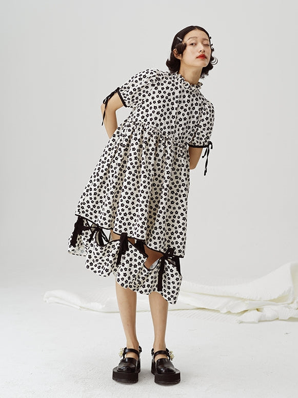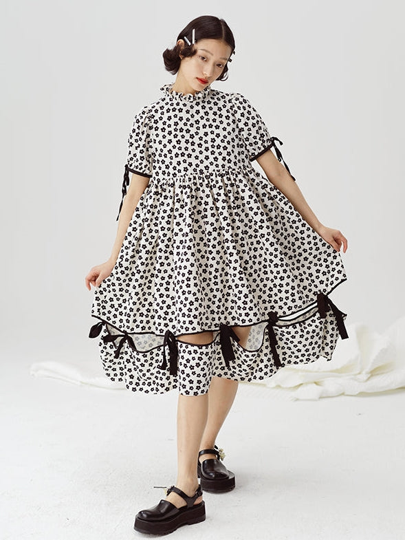 Stand-up Collar Cute Floral Dress
