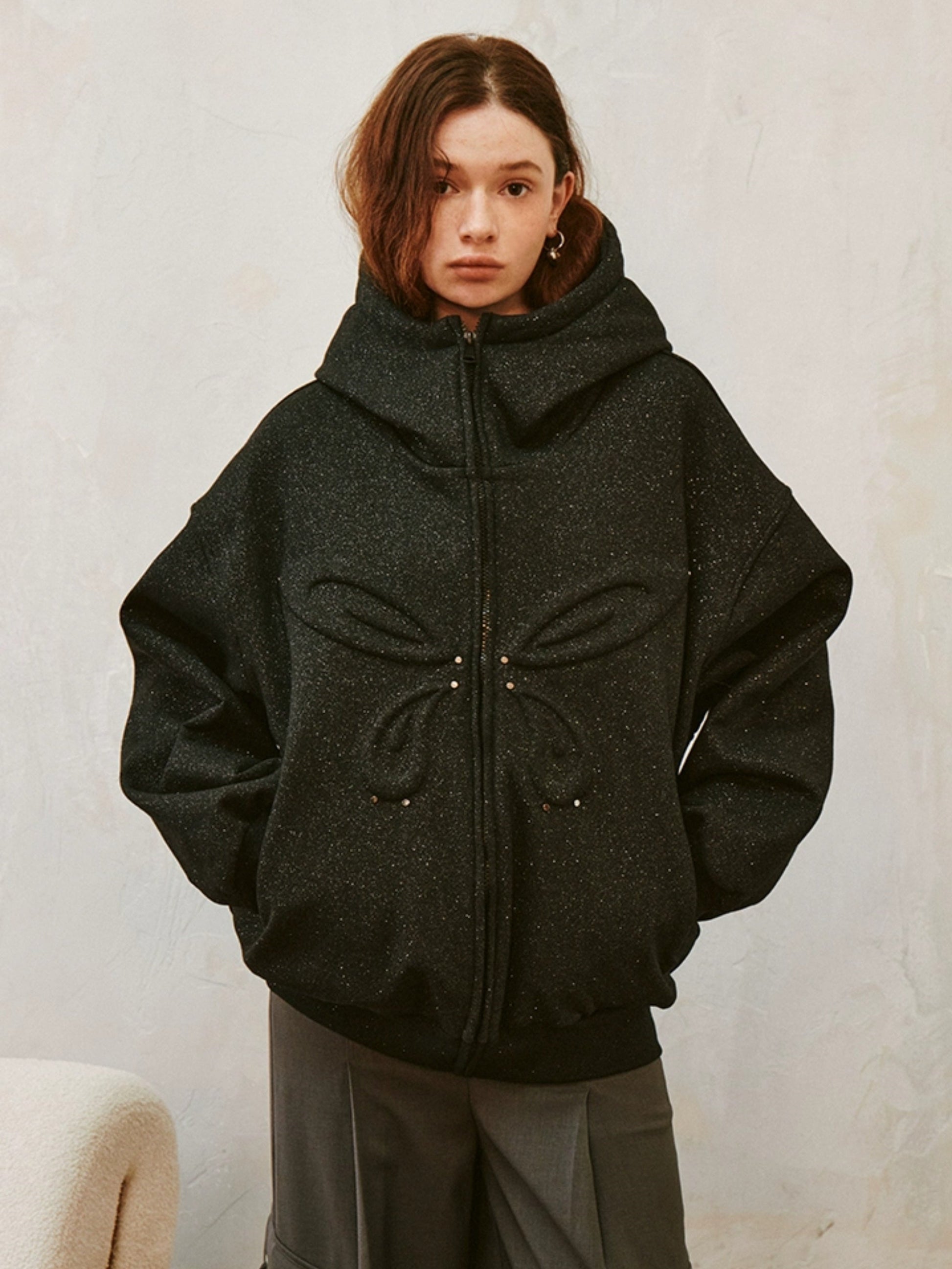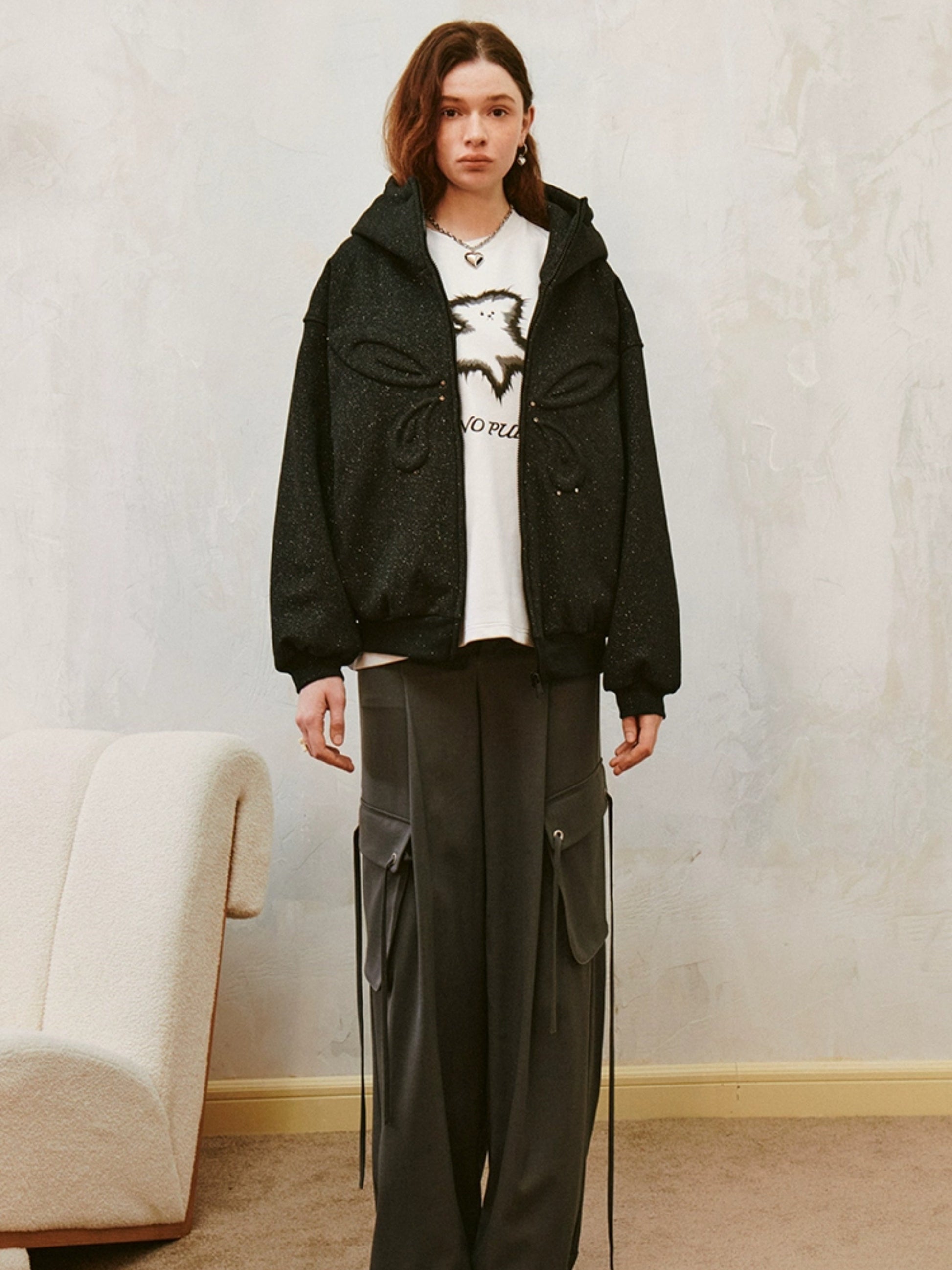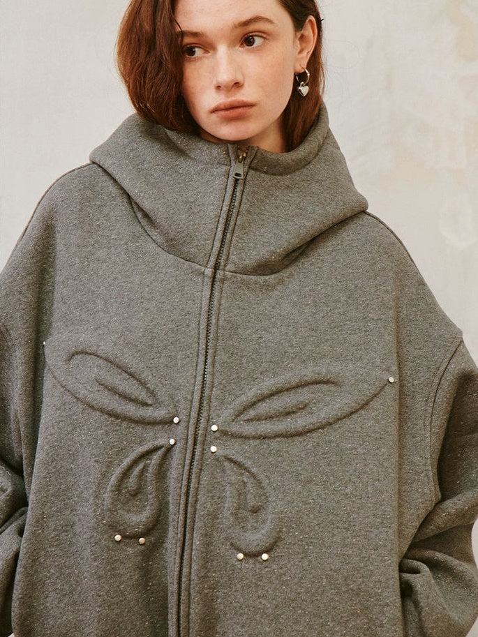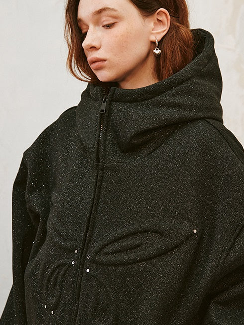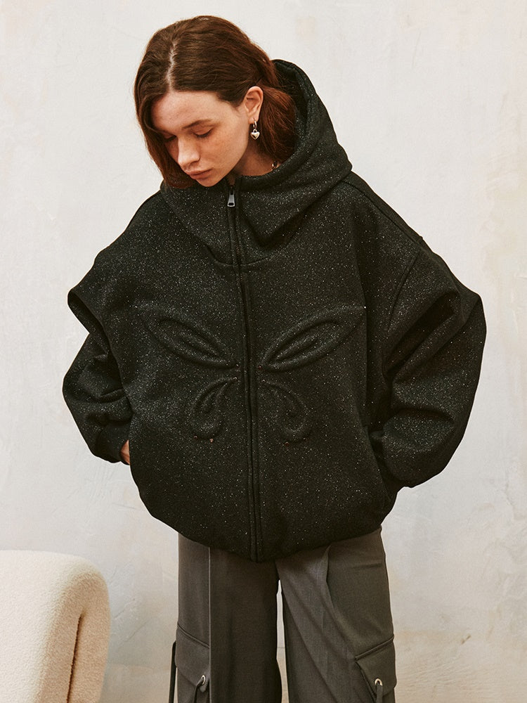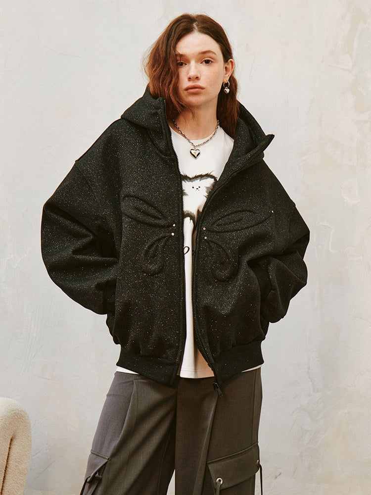 Starry Sky Butterfly Embossed Hooded Sweat Jacket