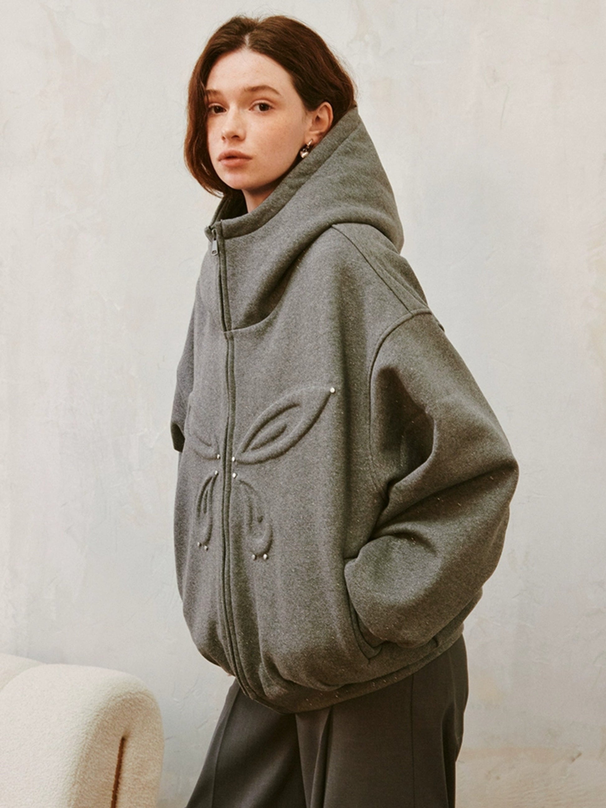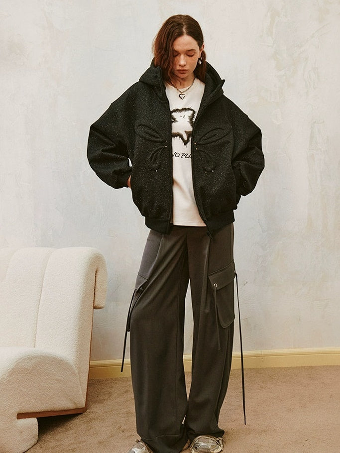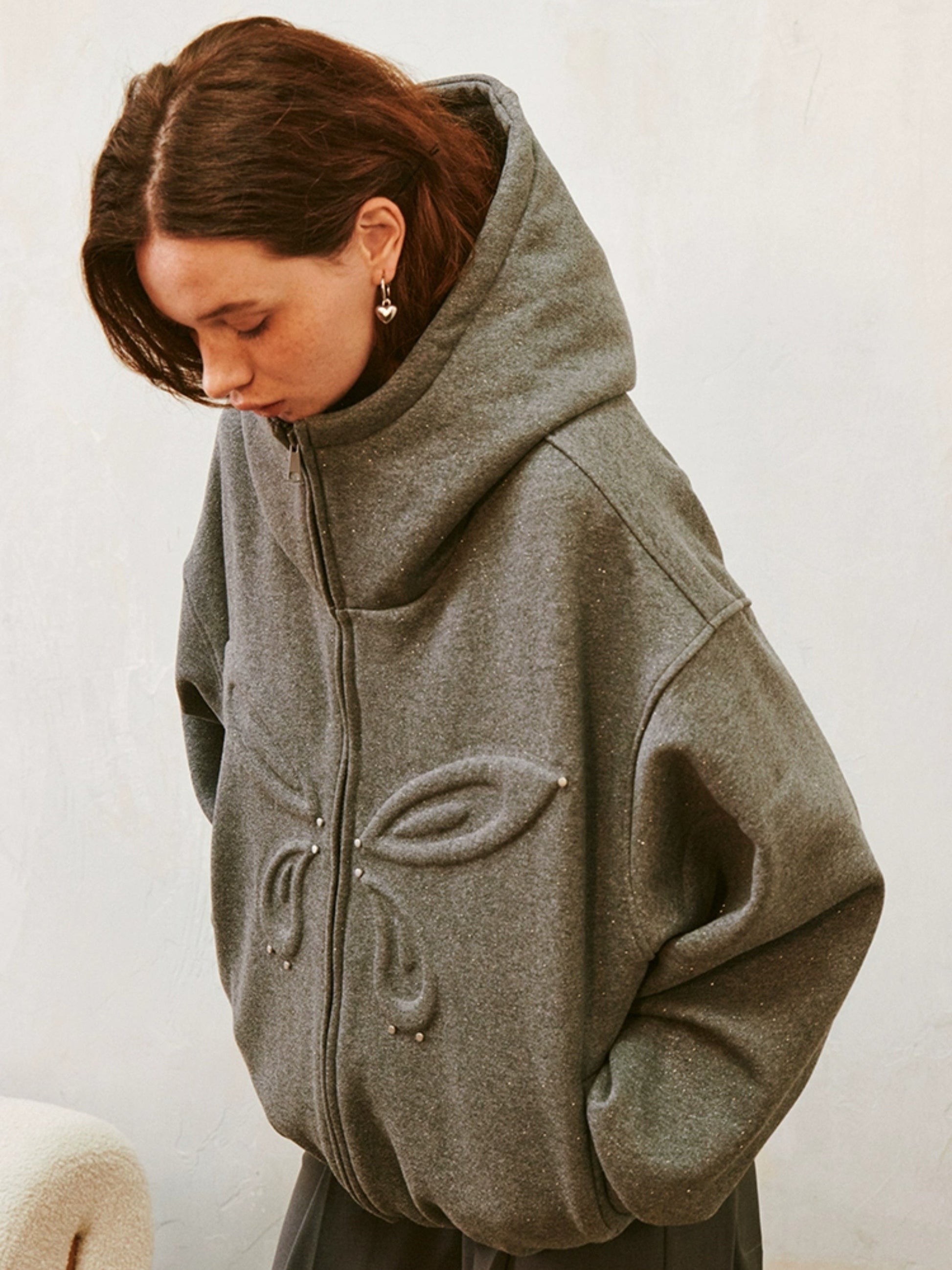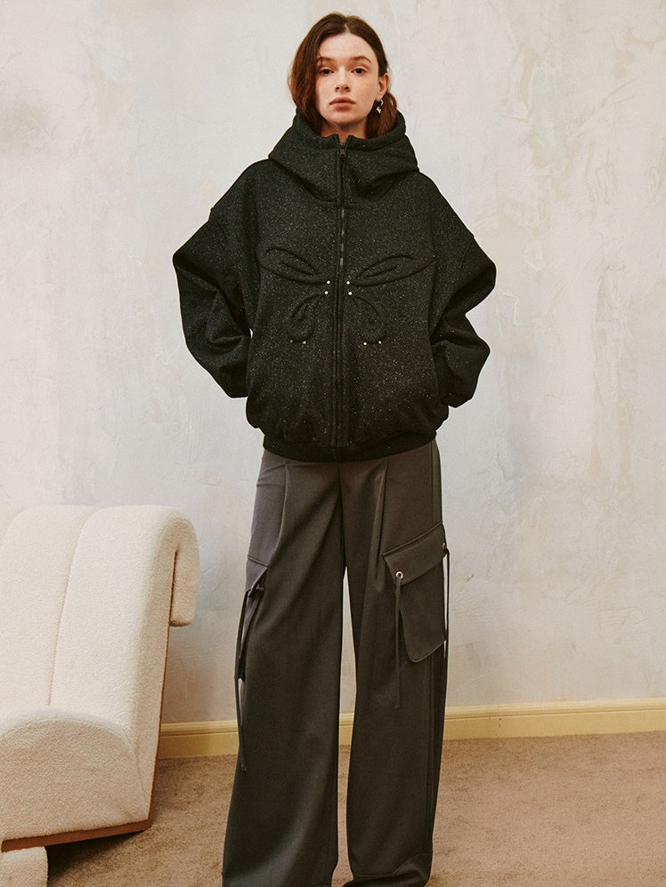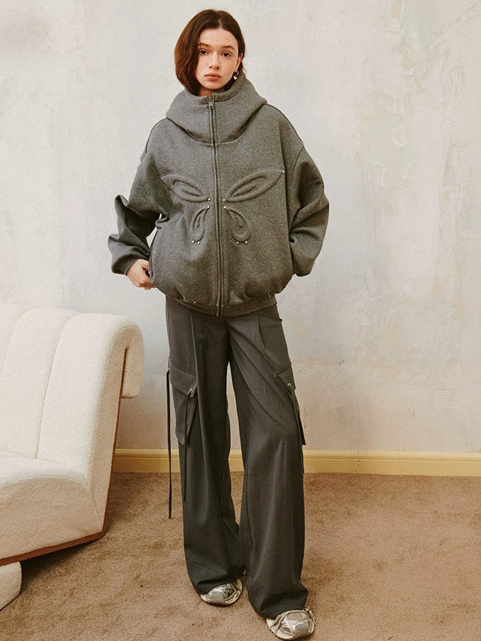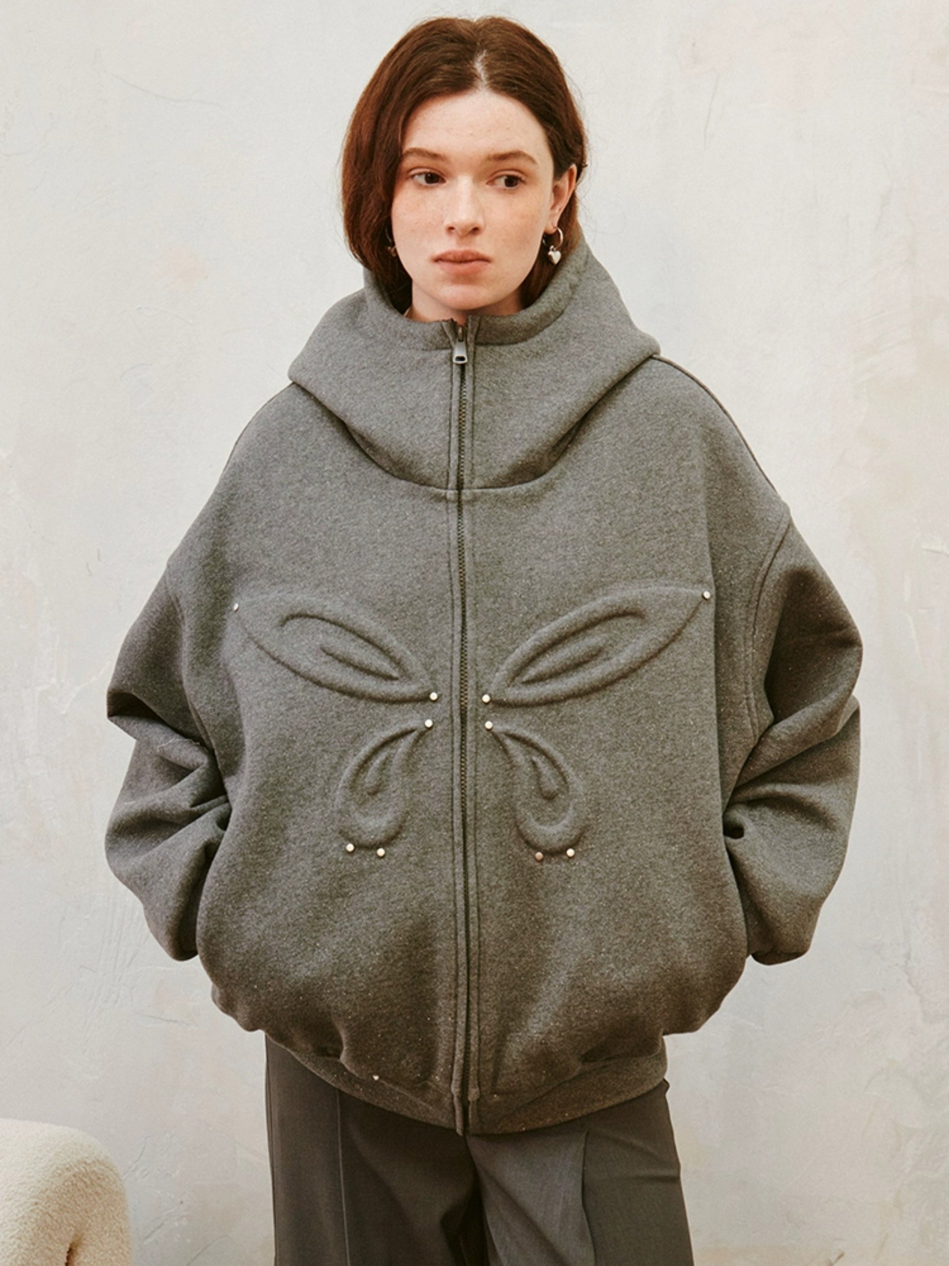 Starry Sky Butterfly Embossed Hooded Sweat Jacket