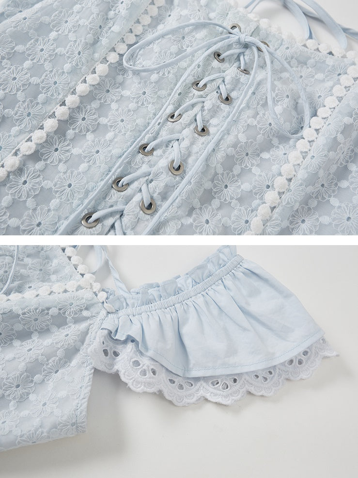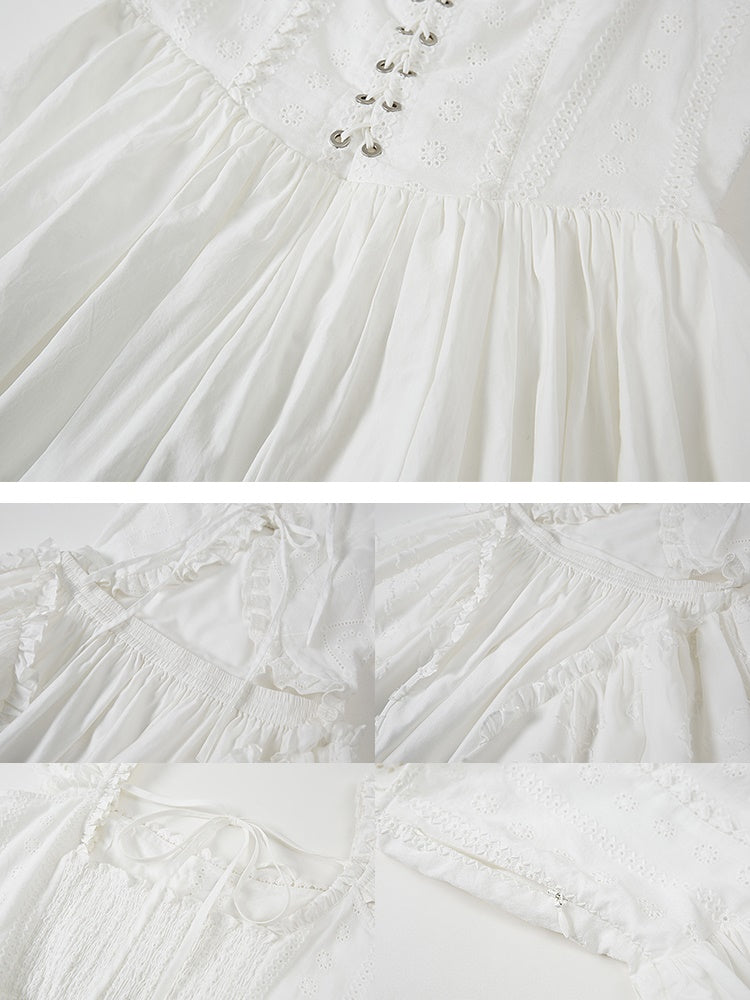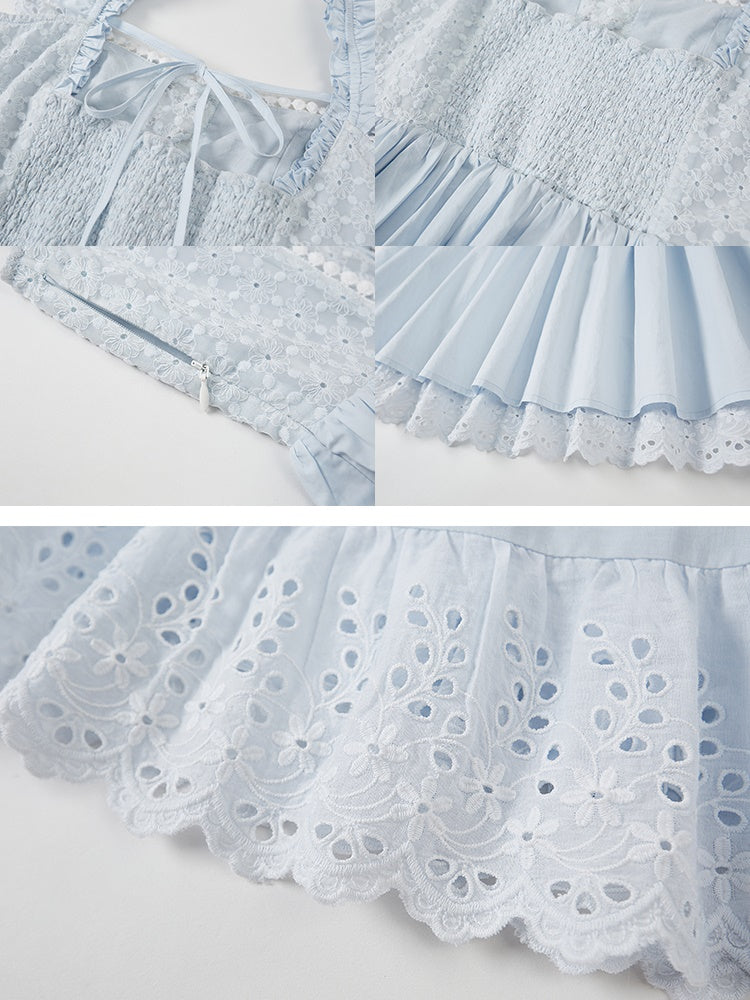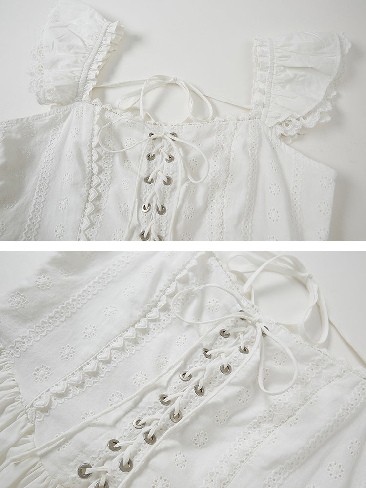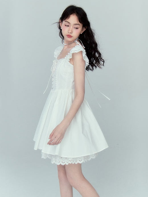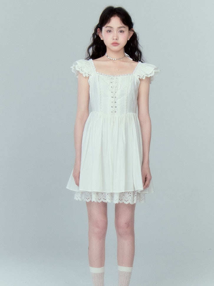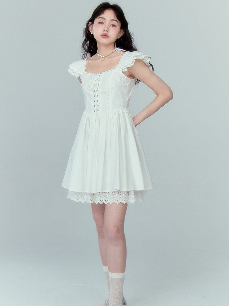 Stitching Lace Jacquard Flying Sleeve Dress
