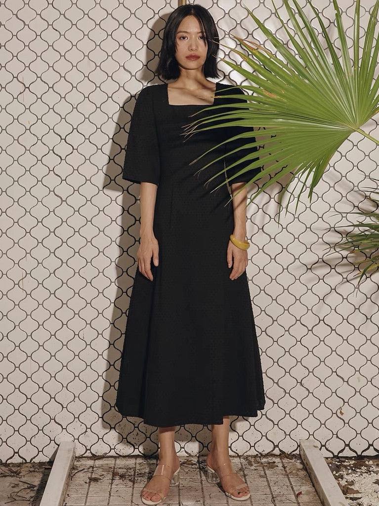 Tailored Flare Midi Dress in Black