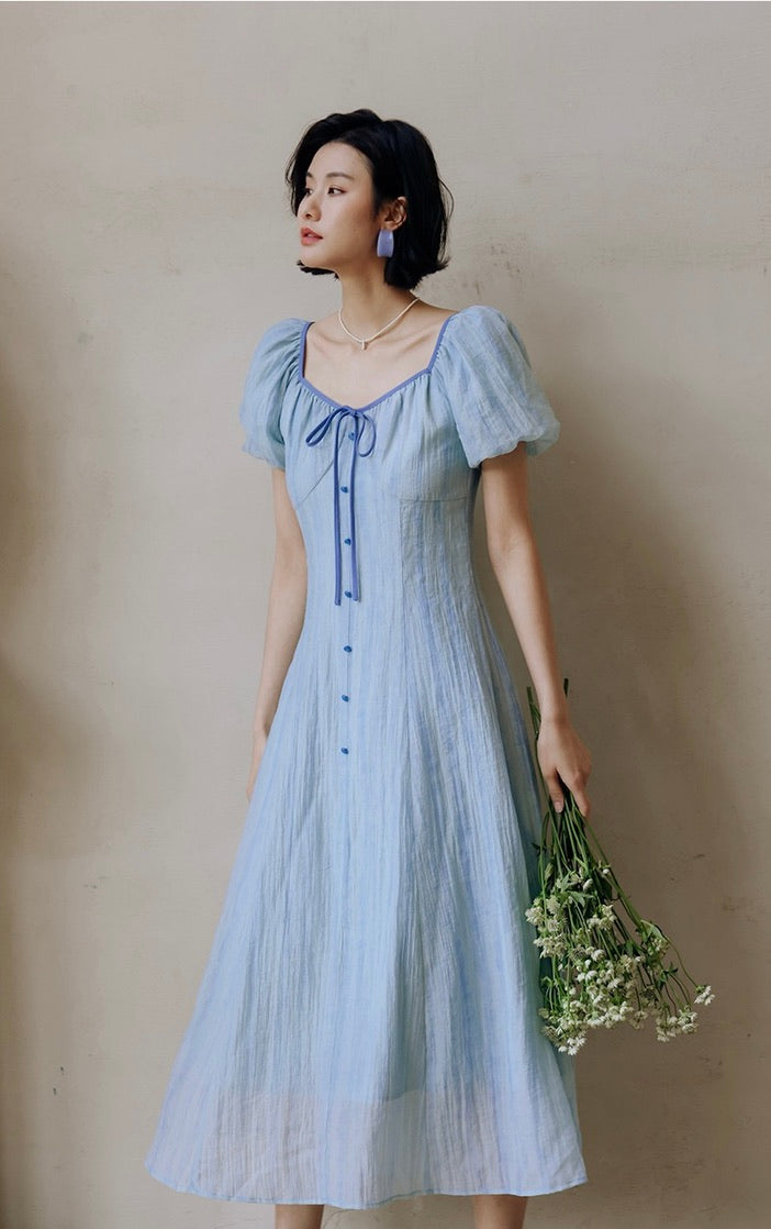 Tencel Puff Sleeve Dress in Blue