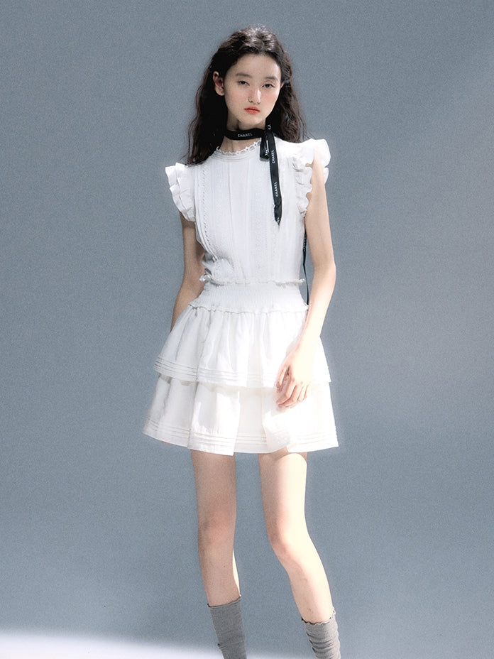 Tiered Lace Frill Feminine Flare One-Piece