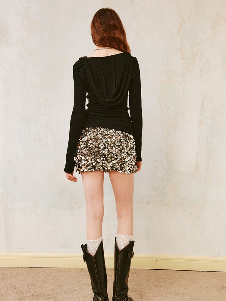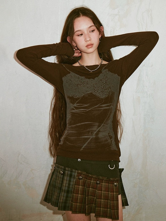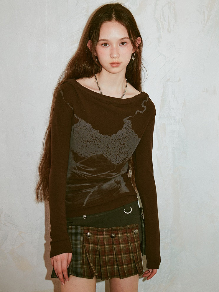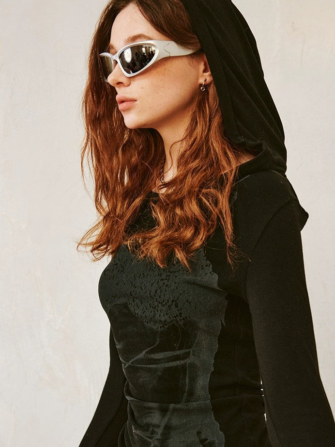 Trompe L'oeil Suspender Print Hooded Top