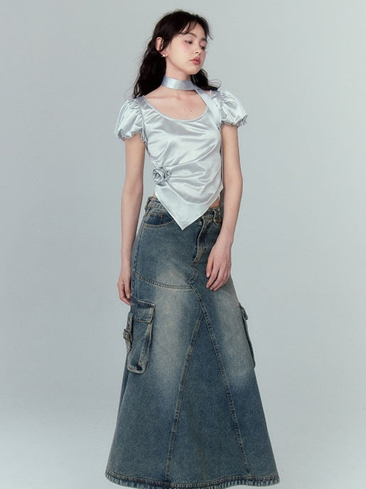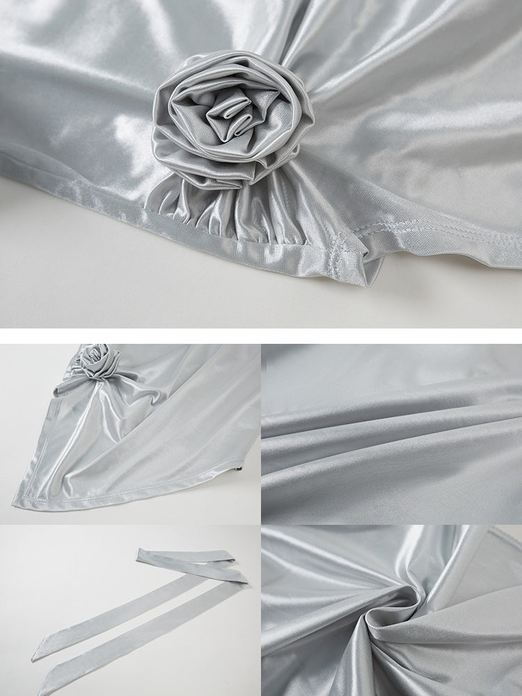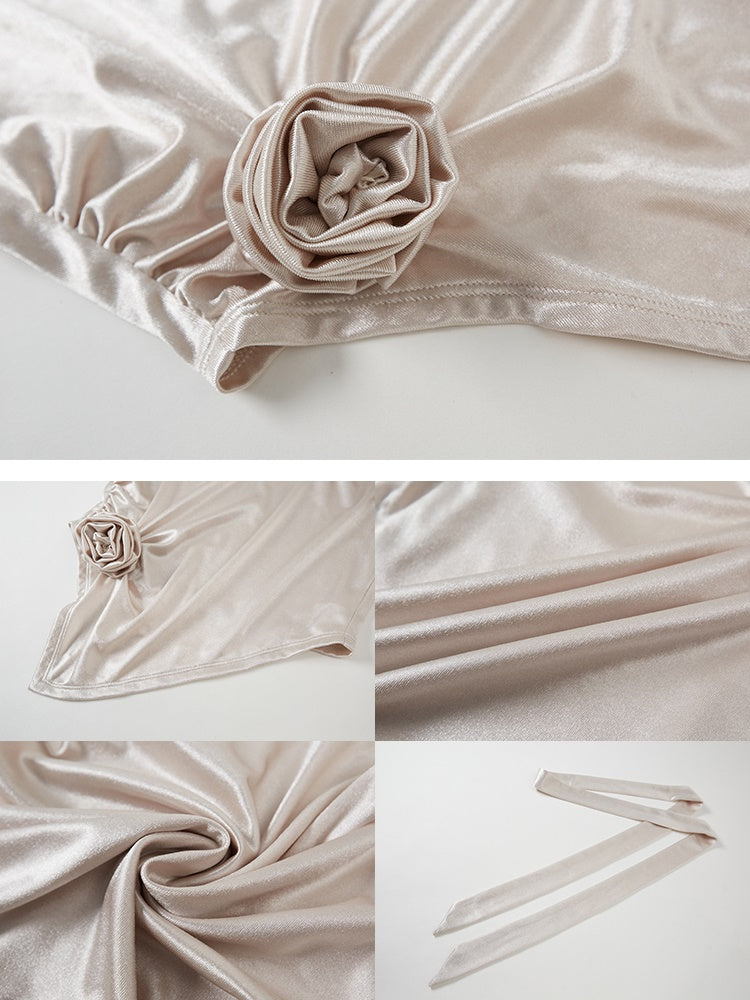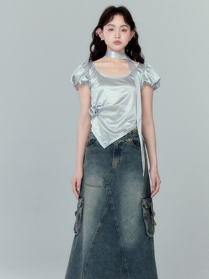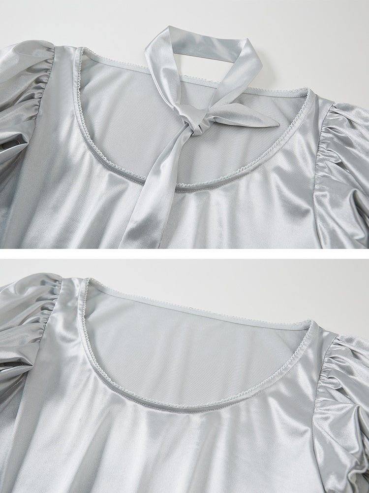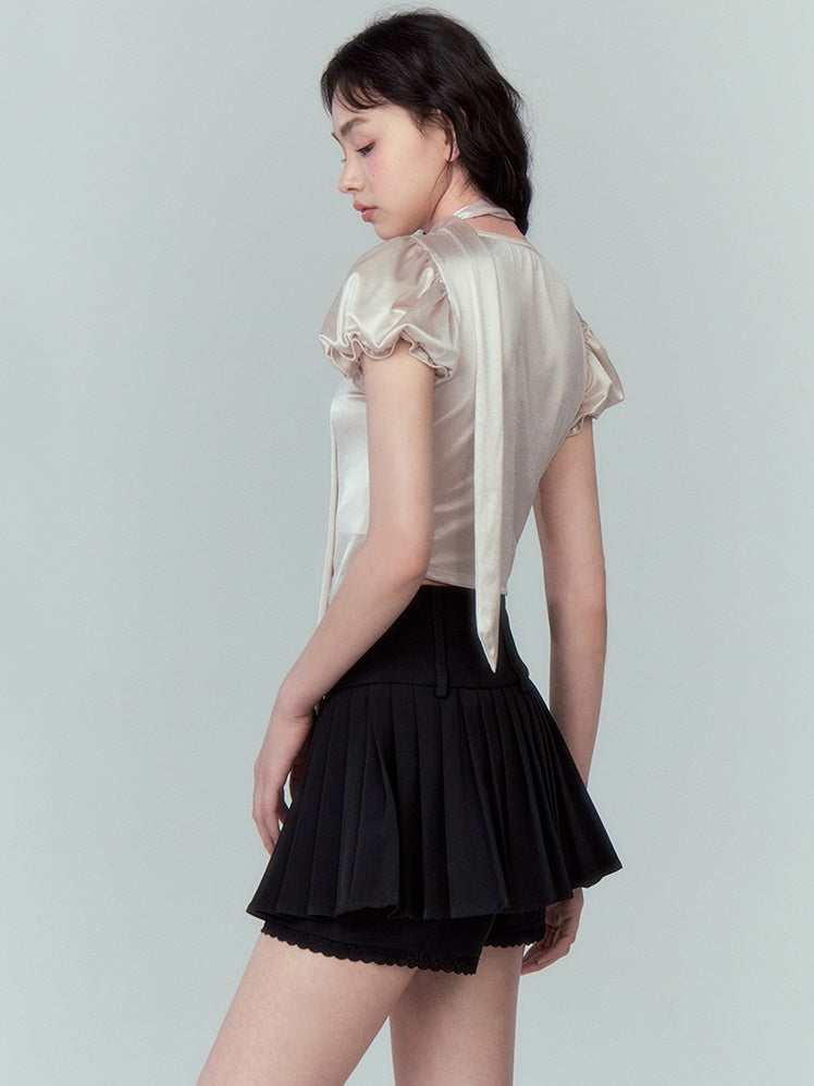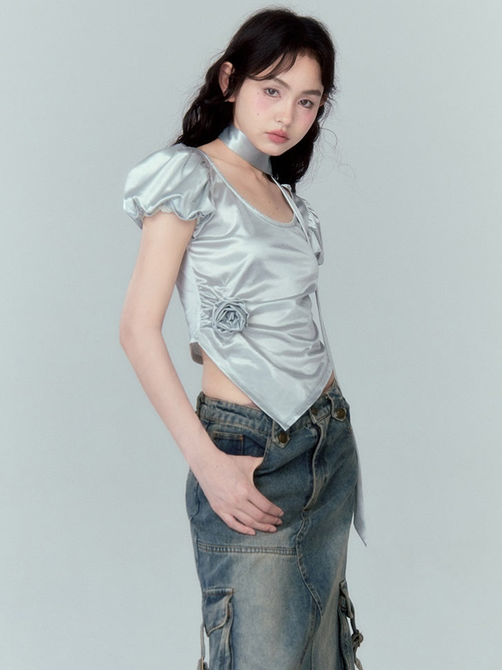 Wrinkled Bud Sleeve Short-sleeved Satin Top